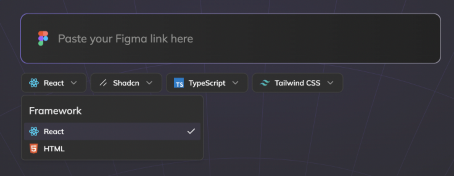 Before generating code, you need to tell Anima what tech stack you're working with. This ensures the output matches your project's architecture and doesn't require heavy refactoring later.