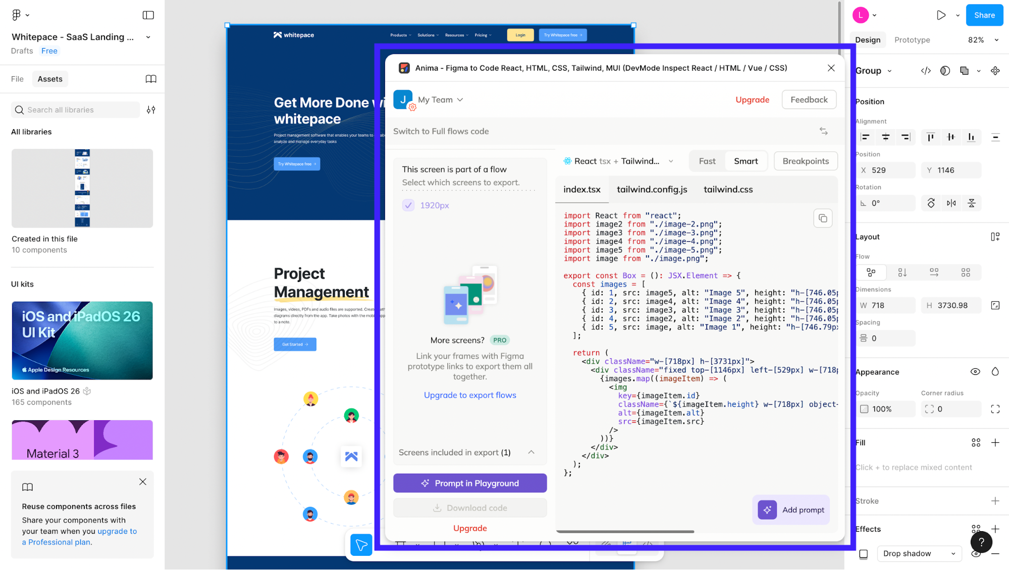 The responsiveness implementation is particularly solid. Anima translates Figma's Auto Layout into functional flexbox CSS automatically. This preserves the responsive behavior designers intended, so developers aren't reverse-engineering layout logic from static screens.