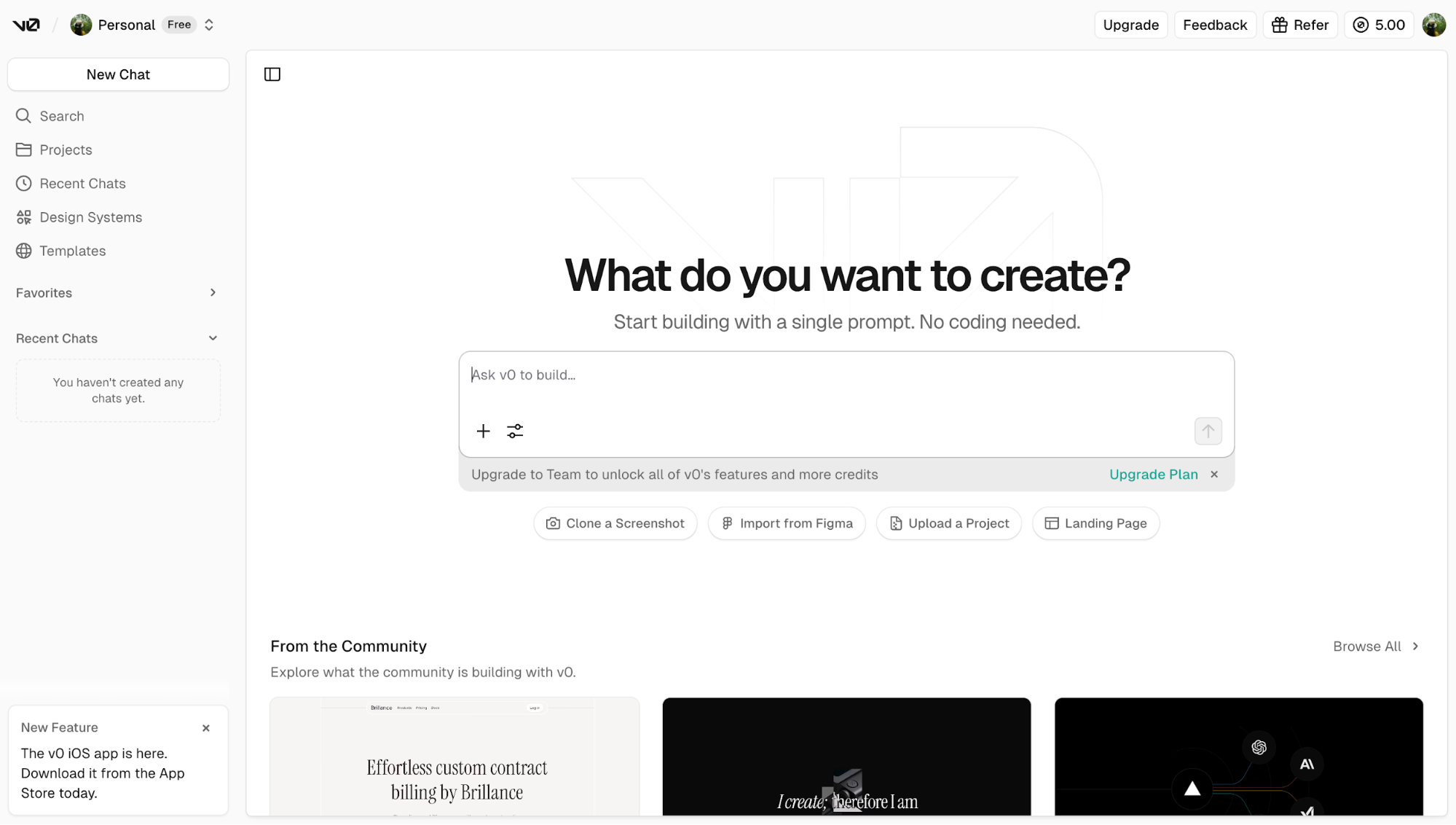 V0 is best for startups or technical founders who want to skip the design phase and get something working fast. It also fits well when your workflow involves heavy front-end deployment and you’re comfortable using Vercel’s stack.