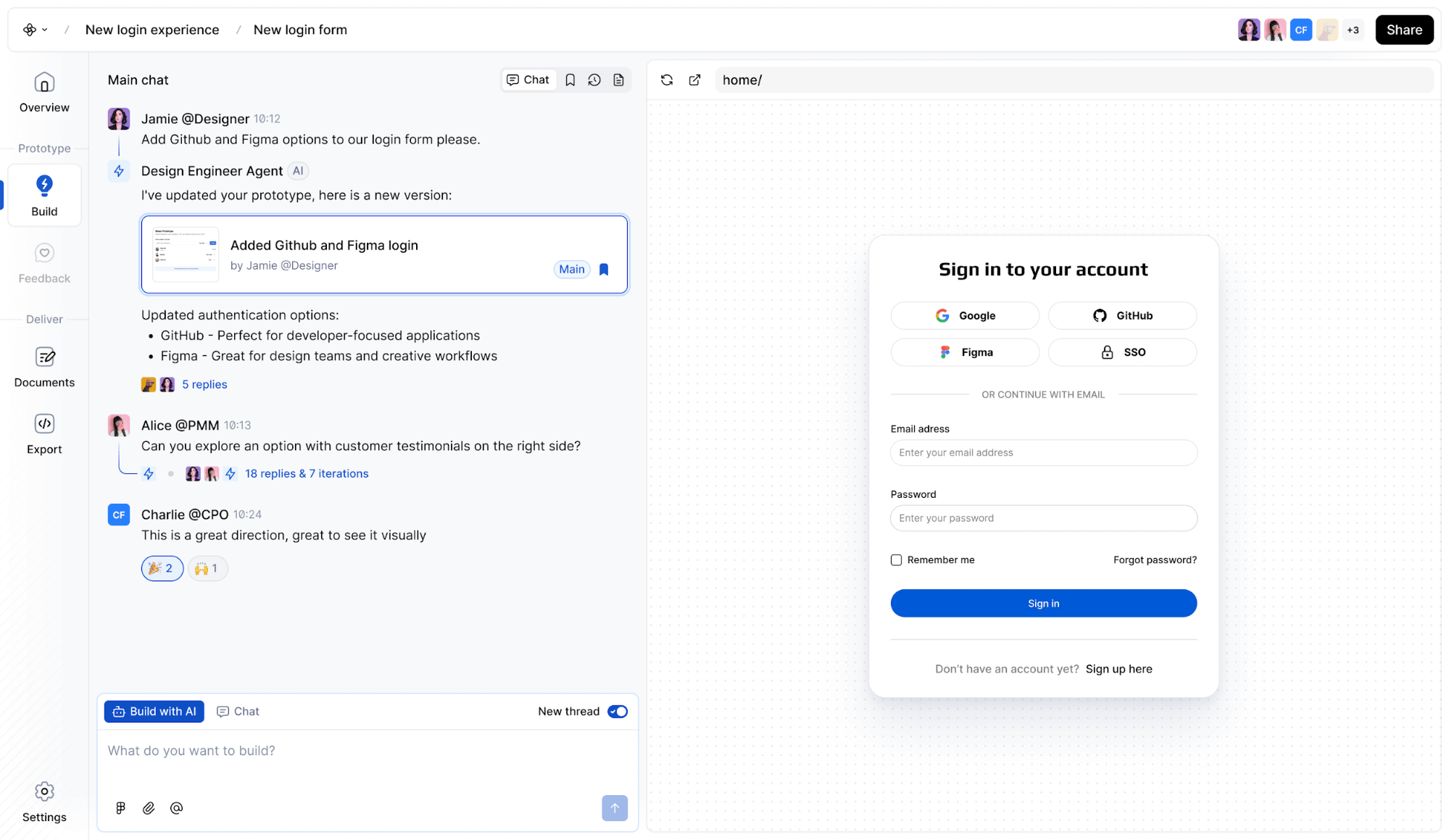 Centralized collaboration — Each Playground keeps Figma files, code edits, and live previews on the same screen, so designers and developers can easily collaborate.