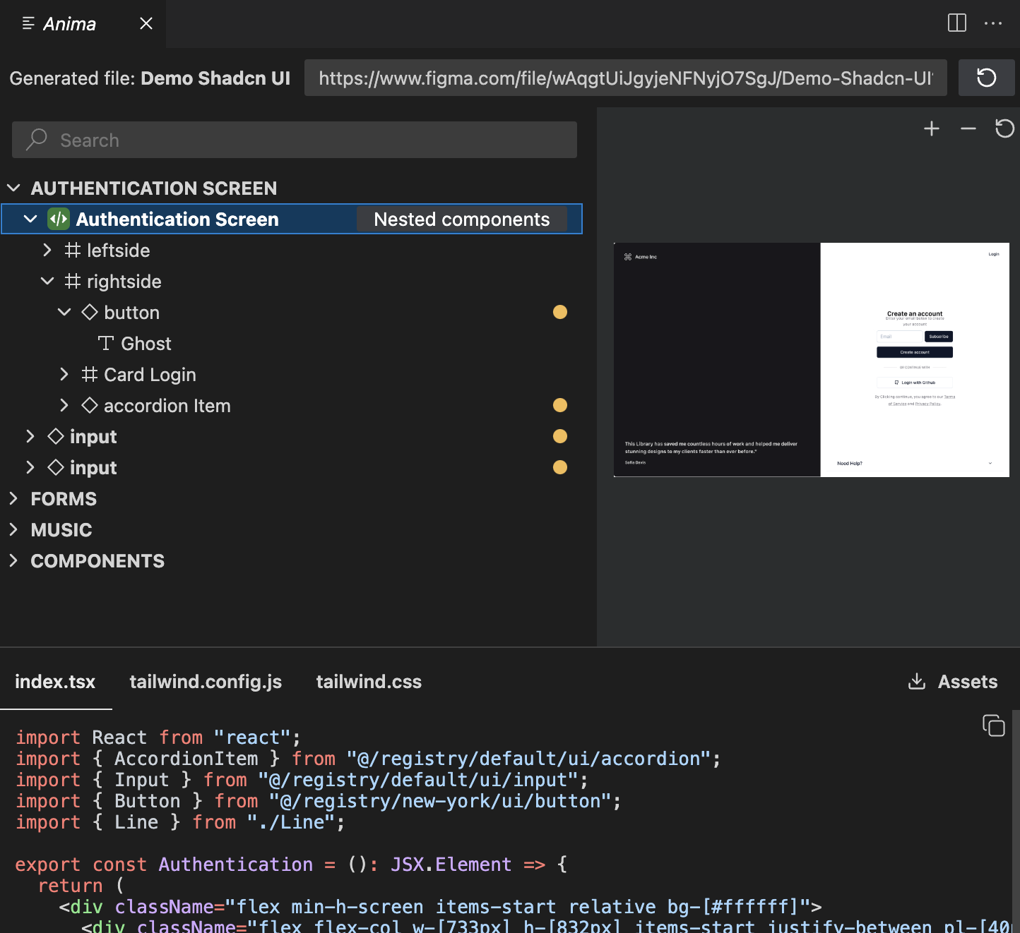 Anima excels at handling the design-to-code conversion with minimal quality loss. The platform generates semantic HTML and structured React components that developers can actually work with.