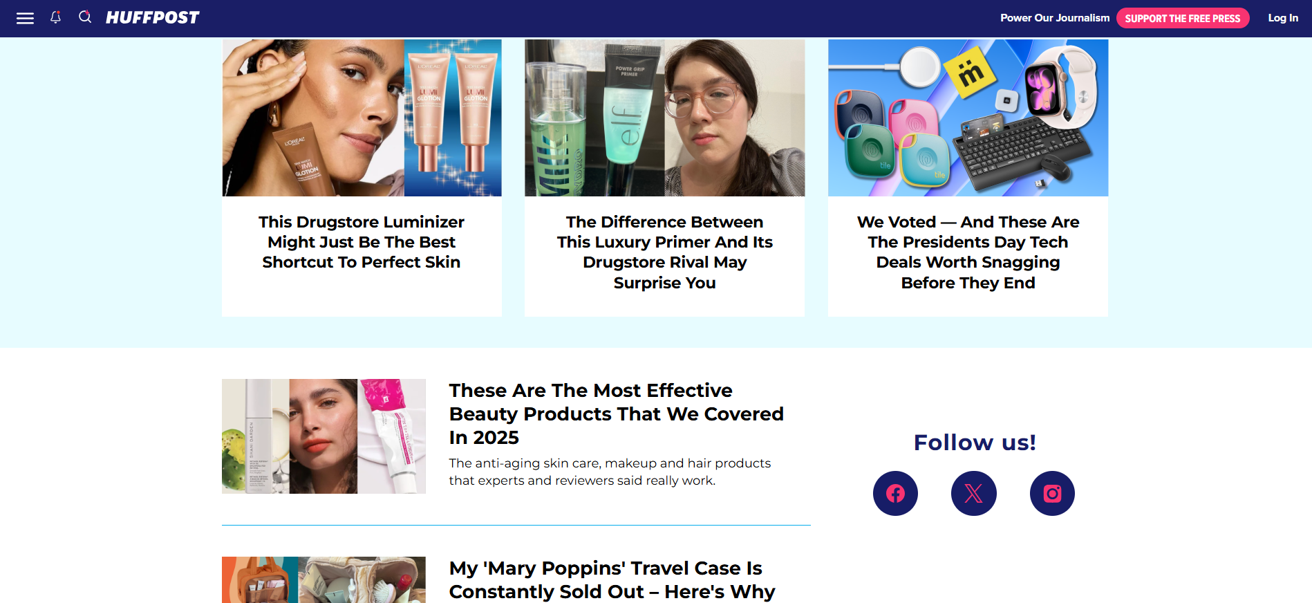 HuffPost's layout structure is also inconsistent across web pages. Here's how the shopping page's below-the-fold section looks like: