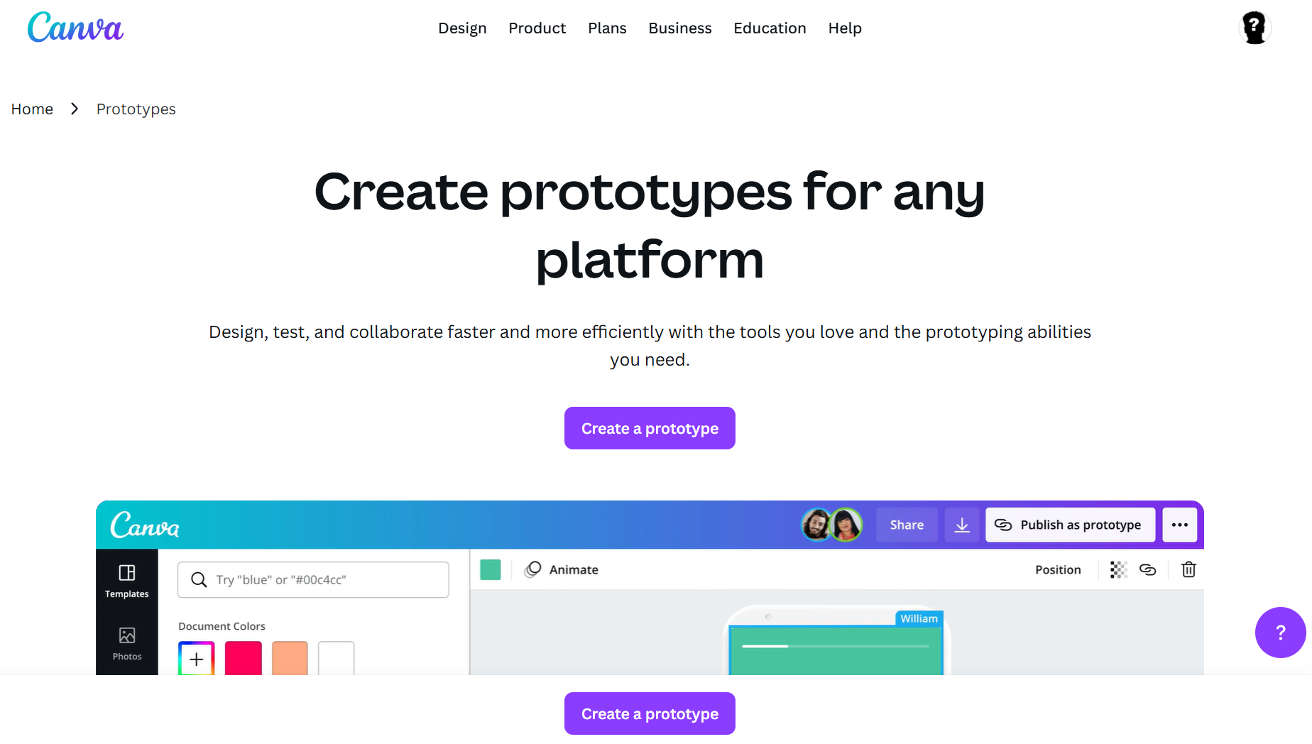 The trade-off is depth. Canva doesn’t support clickable buttons, the ability to test user flows between screens, and many of the other features you’ll find in dedicated prototyping tools.