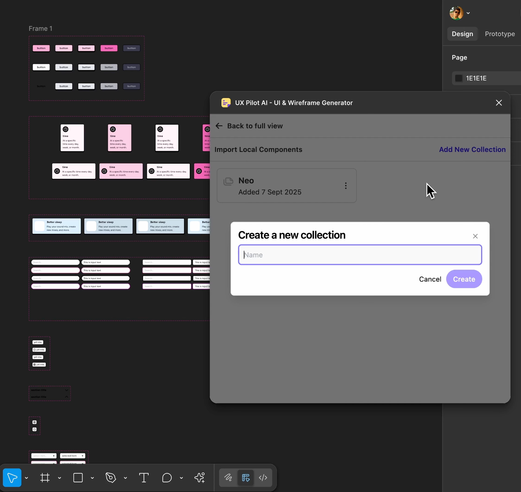 But it doesn’t box in experienced designers who already have established design practices and a stringent criterion when creating prototypes, either. UX Pilot lets you import your existing design system and export prototypes back into your workflow with its Figma integration.