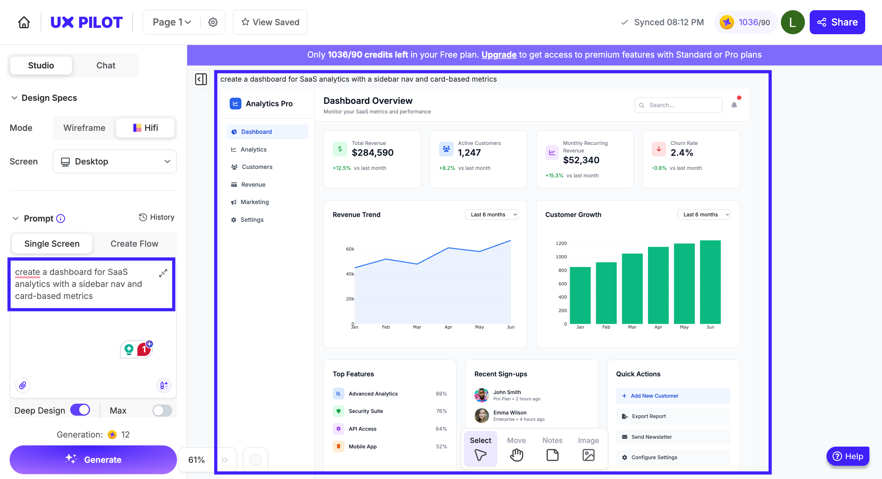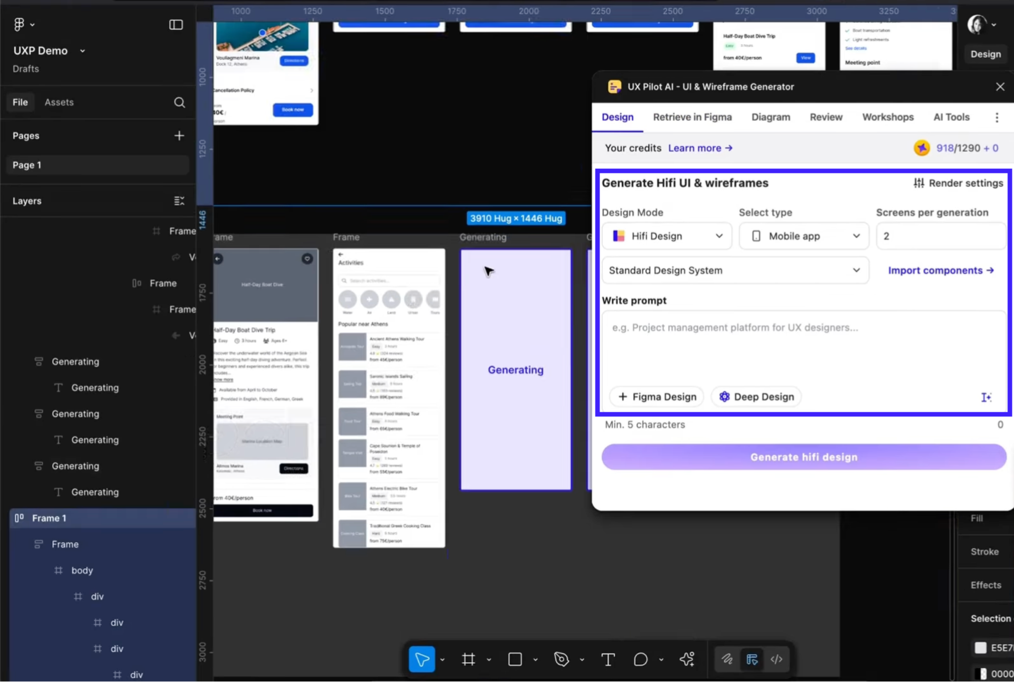 Integrated with Figma: Once the UI is generated, you can export it to Figma or use UX Pilot's Figma plugin to continue refining within your existing design stack.