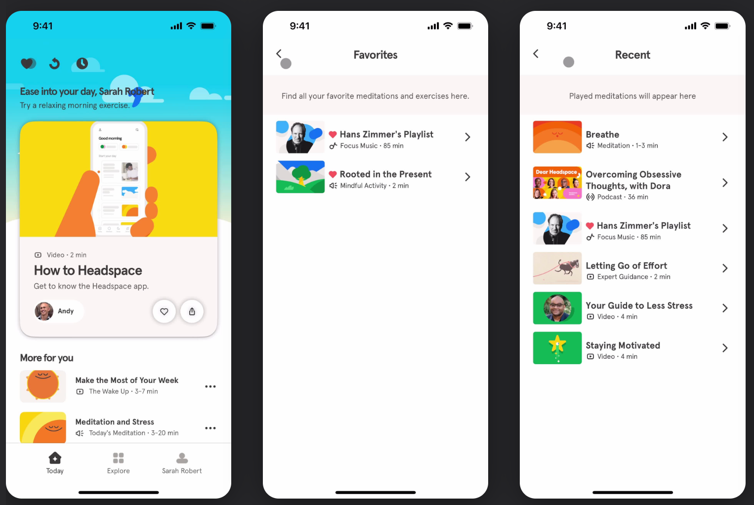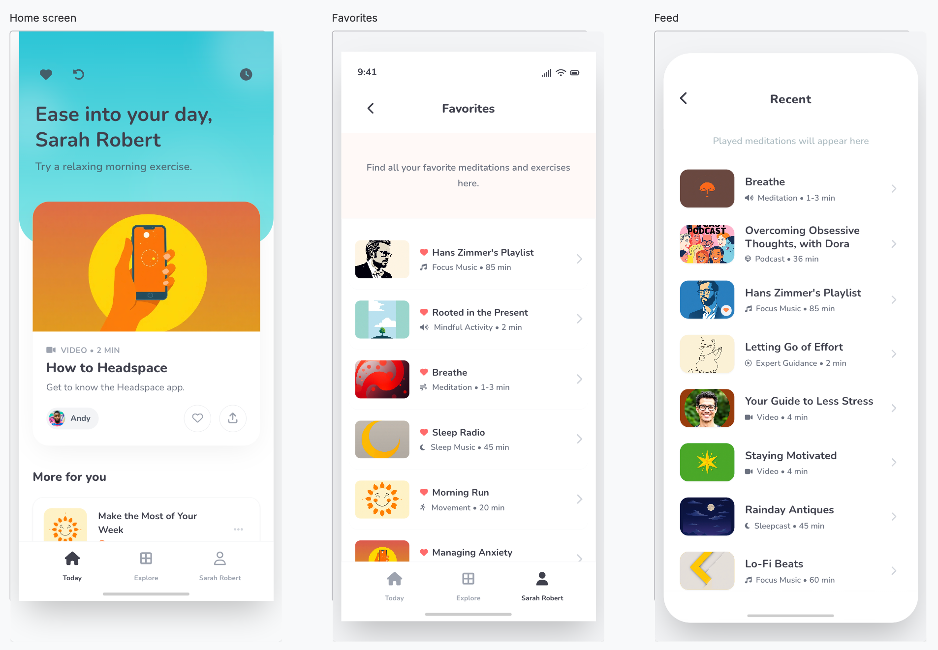 For example, I used screenshots from the Headspace app for design inspiration.