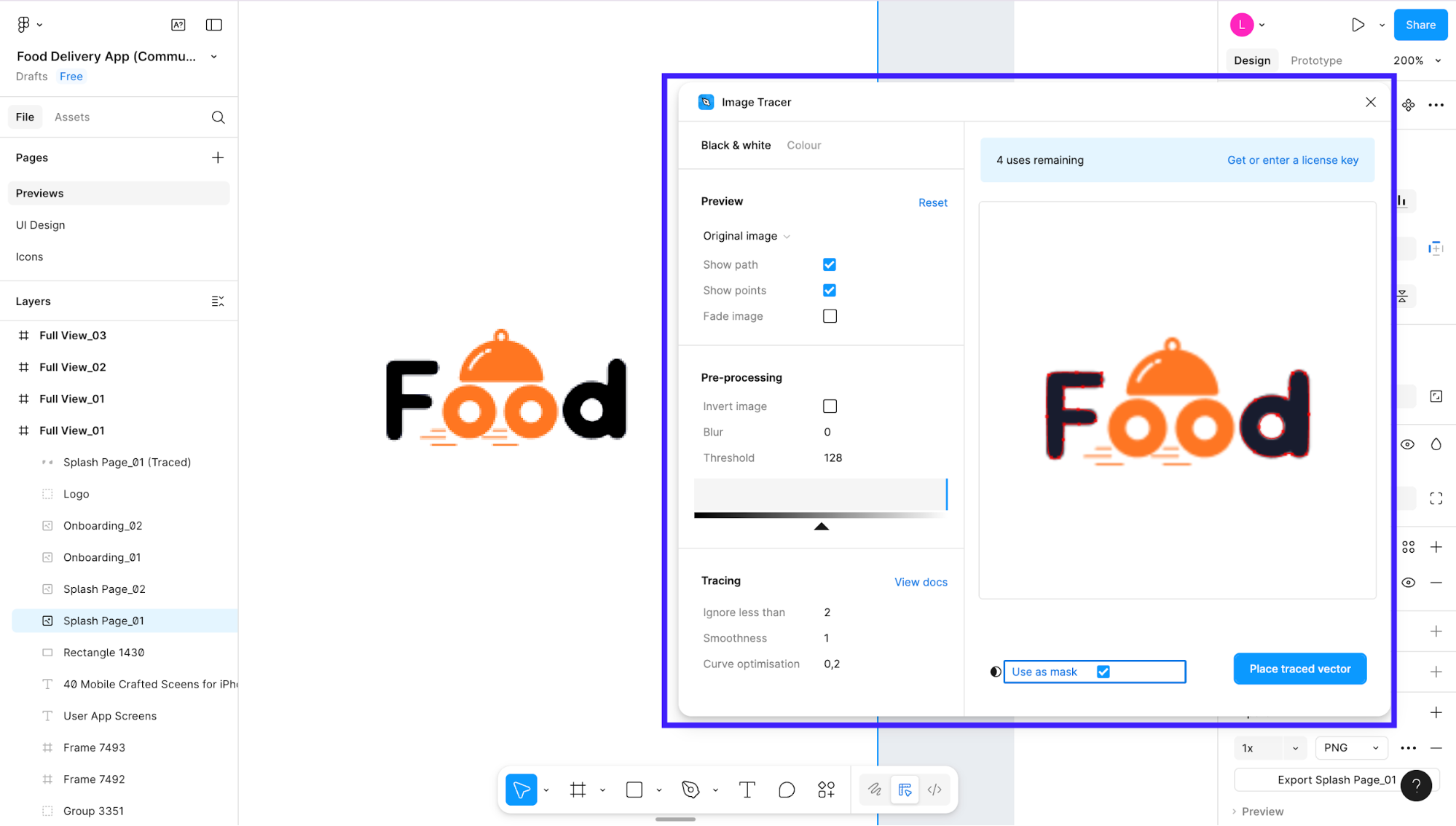 It gives you editable vector results, which means you can tweak colours, strokes, or use the traced artwork in component libraries or UI reuse