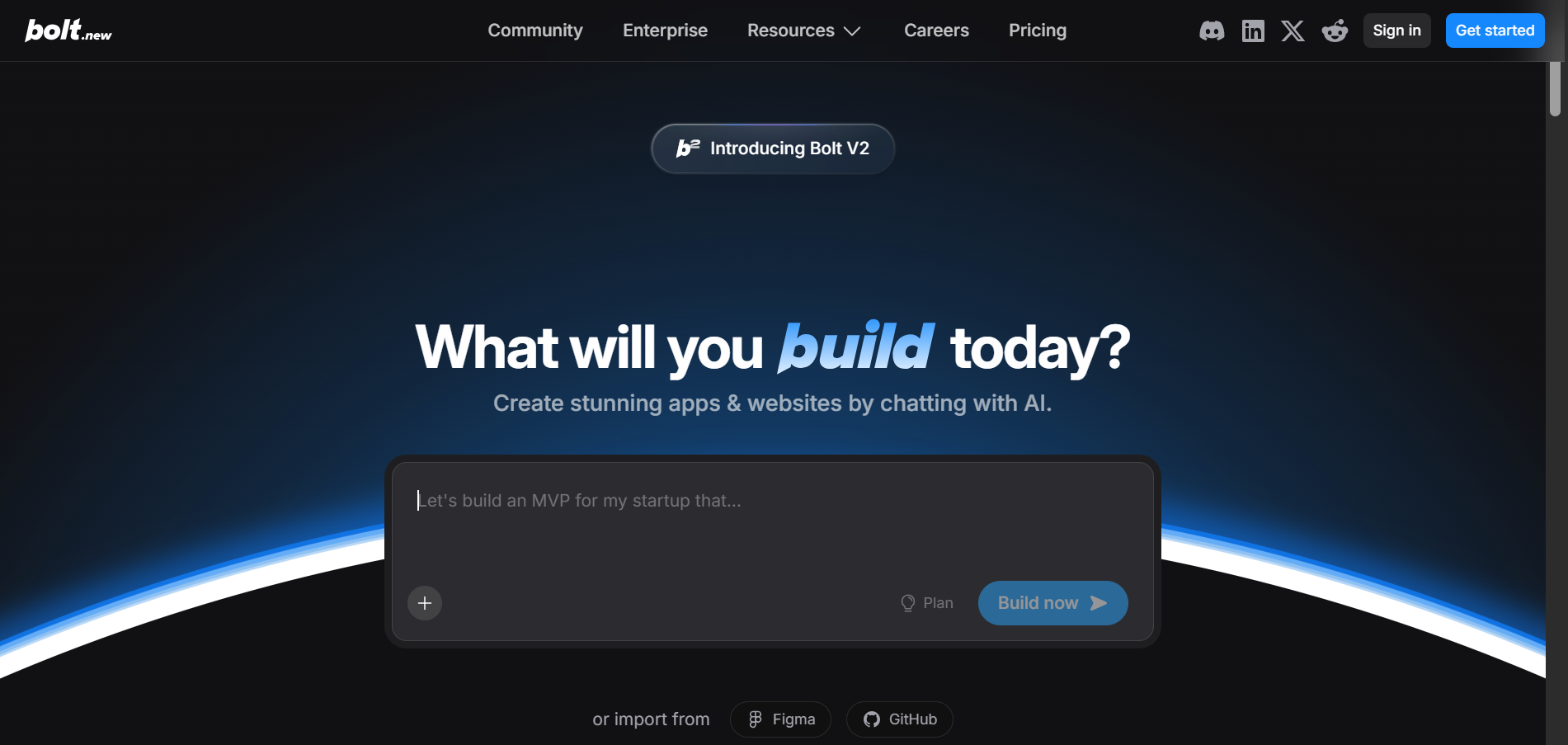 Bolt is another AI vibe coding tool that builds web applications from text prompts, similar to Lovable but with a focus on giving you more control over the development environment. You can see the code in full and manually edit as needed, even on the free plan.