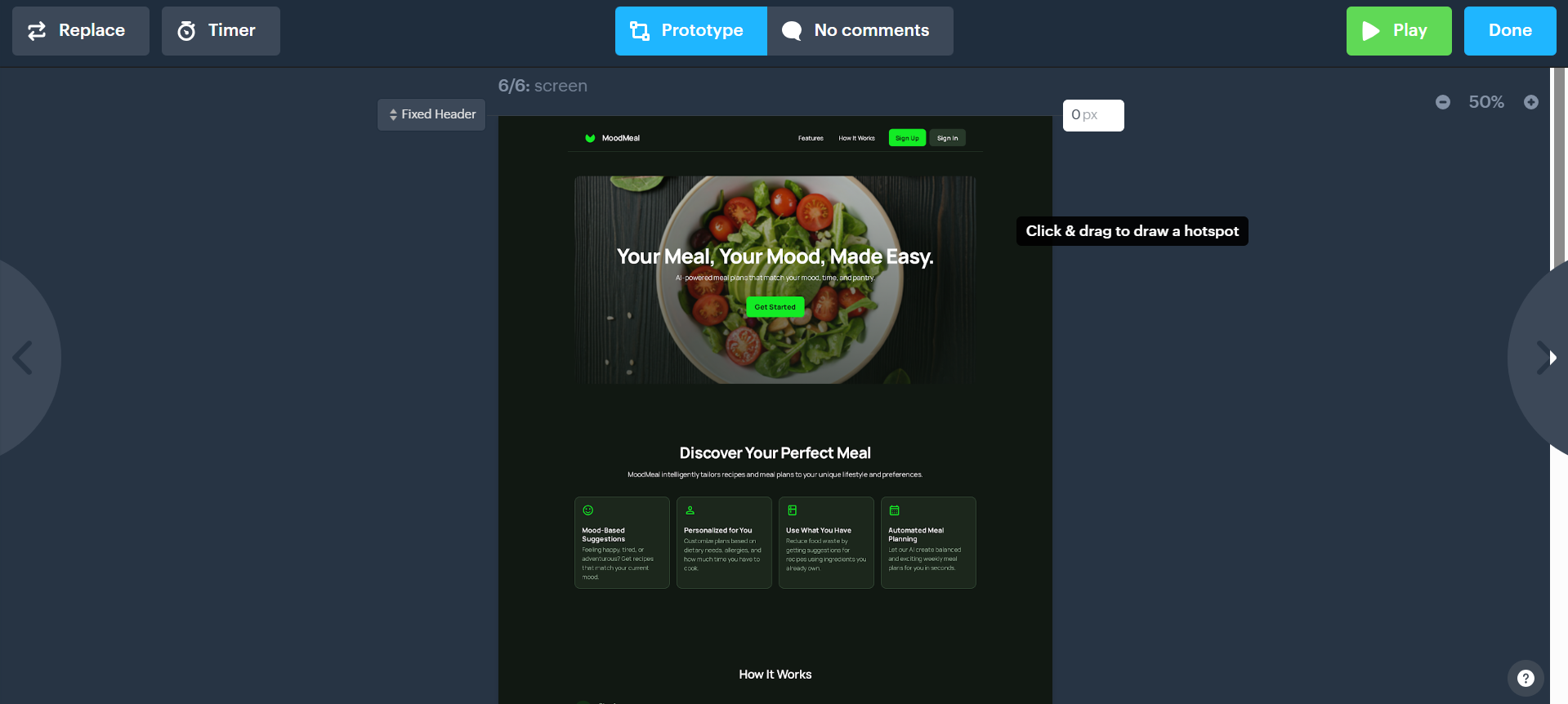 Marvel helps users create interactive prototypes. You can start from scratch with their design tools, import designs from other platforms like Sketch or Figma, or even turn static images into digital prototypes by uploading an image.