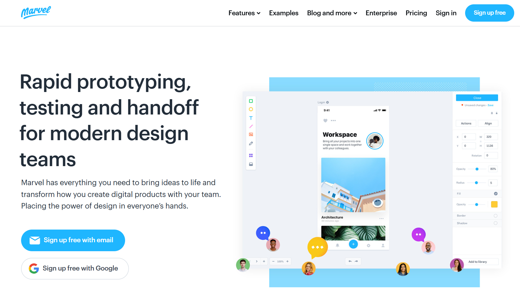Marvel is a simple, browser-based prototyping tool. It is lighter than Figma or Sketch, which makes it a great fit for quick drafts, early-stage ideation, or handing off basic prototypes to stakeholders who do not need the complexity of full-feature design platforms.