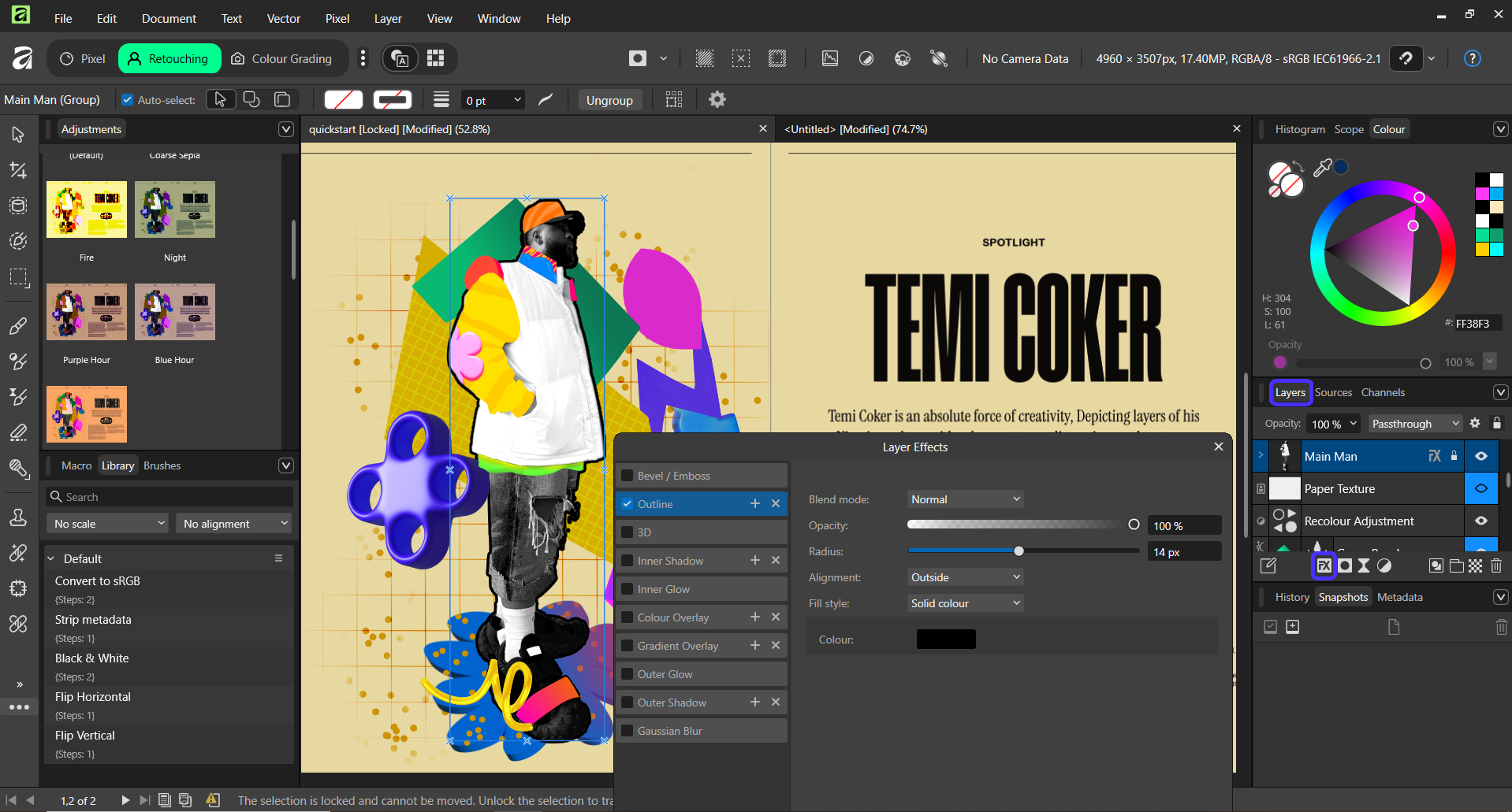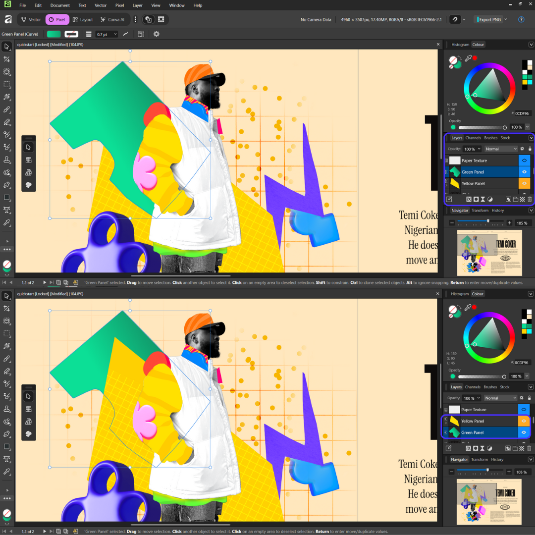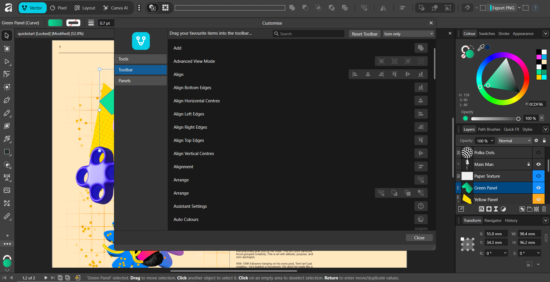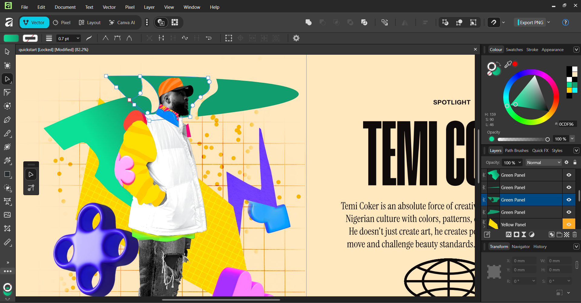Next, you can add non-destructive edits and effects across each particular element within your design. This is where Affinity's layer system comes into play.