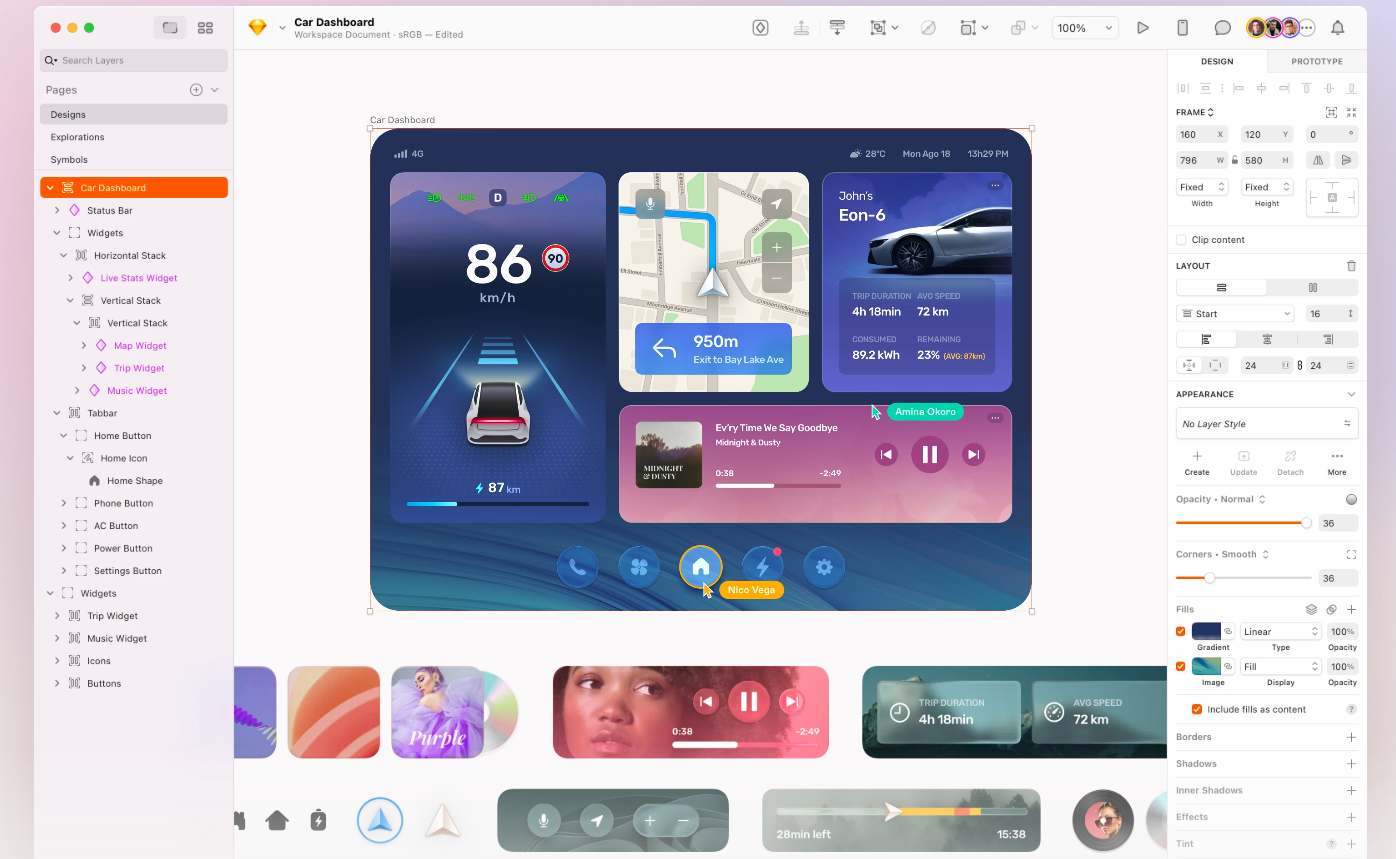 Use multiplayer collaboration and developer hand-off tools to work with your team in real time