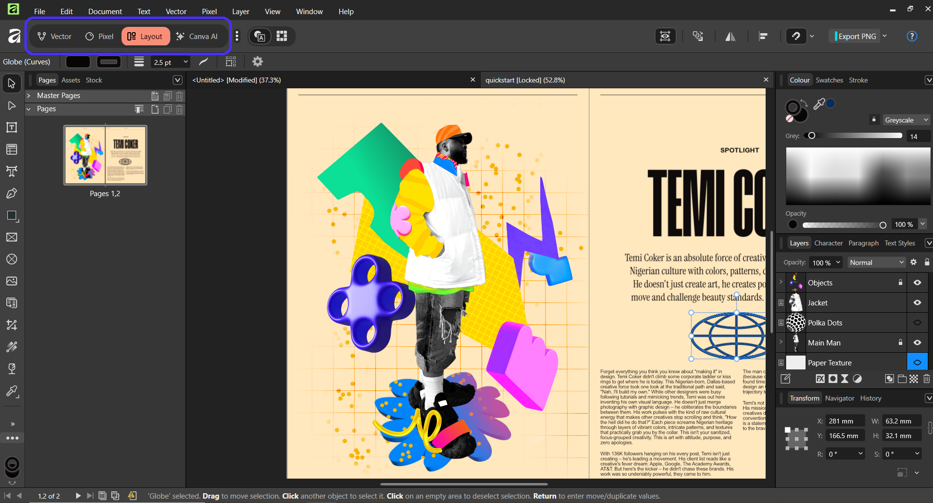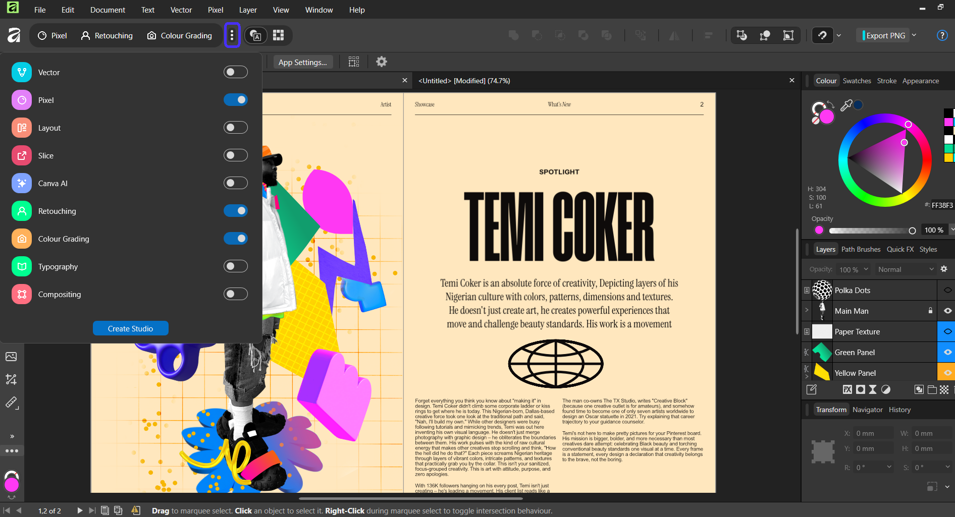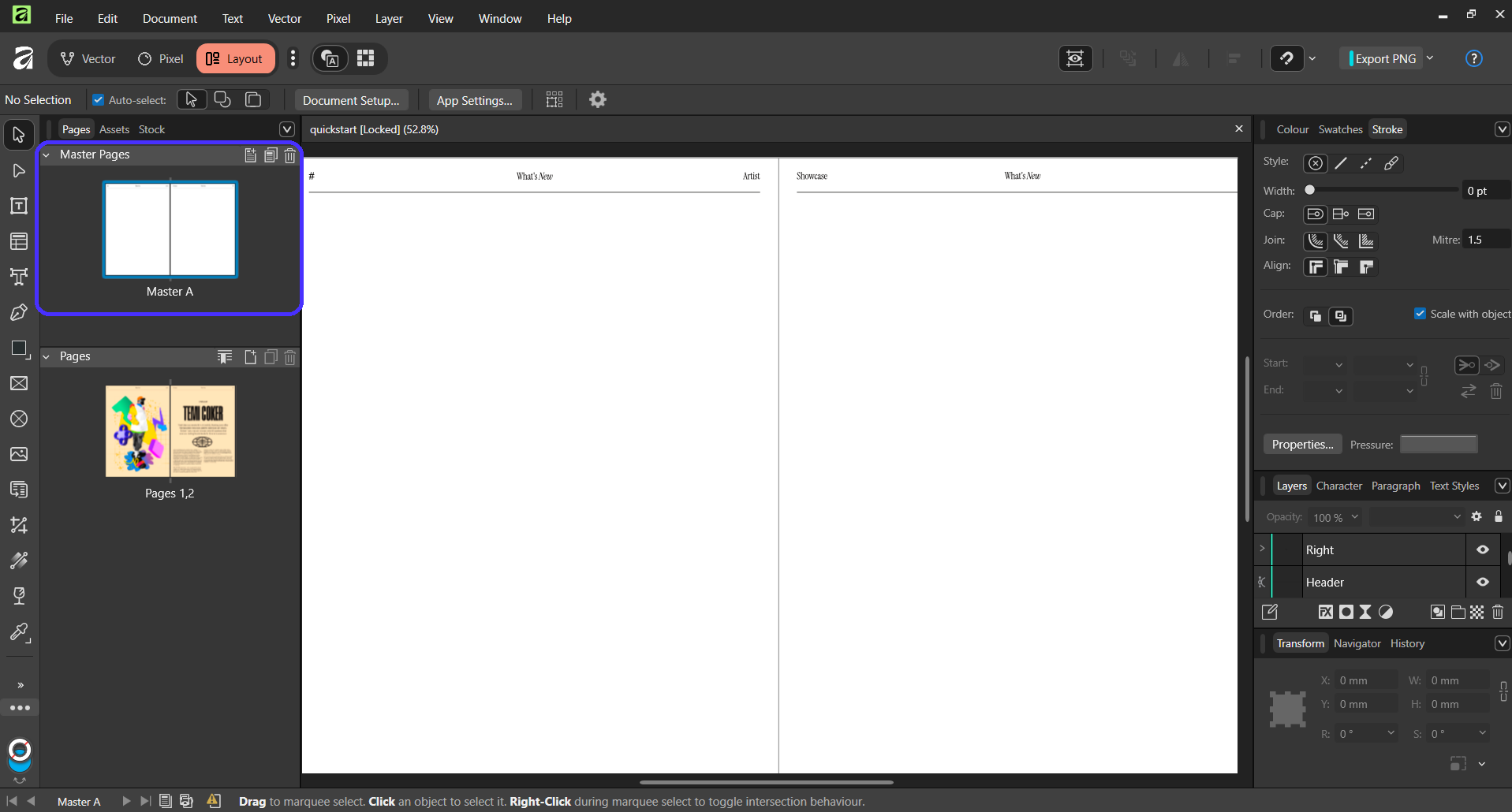 The Layout Studios includes the layout editing toolset previously avaialbe in Affinity Publisher.