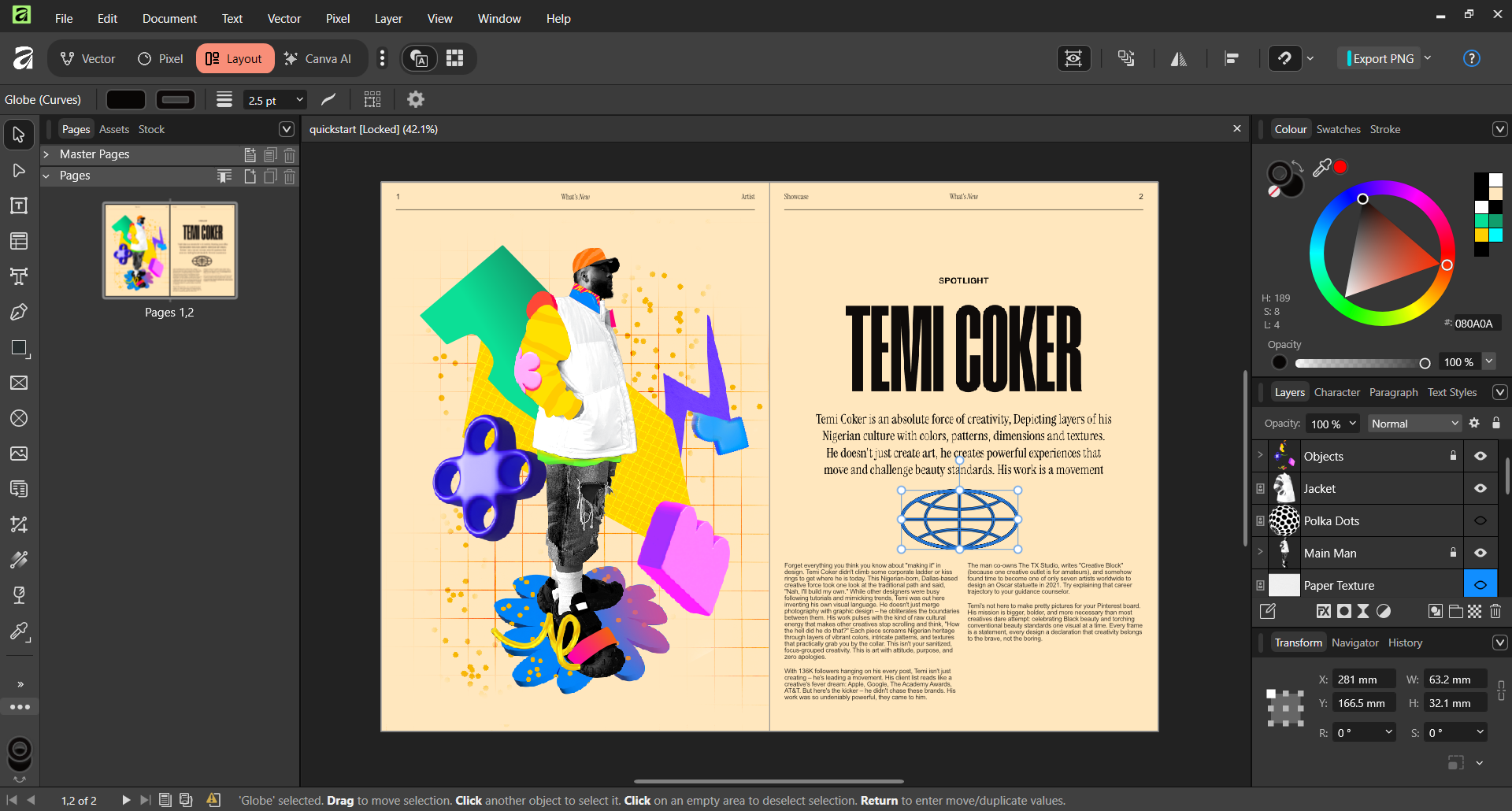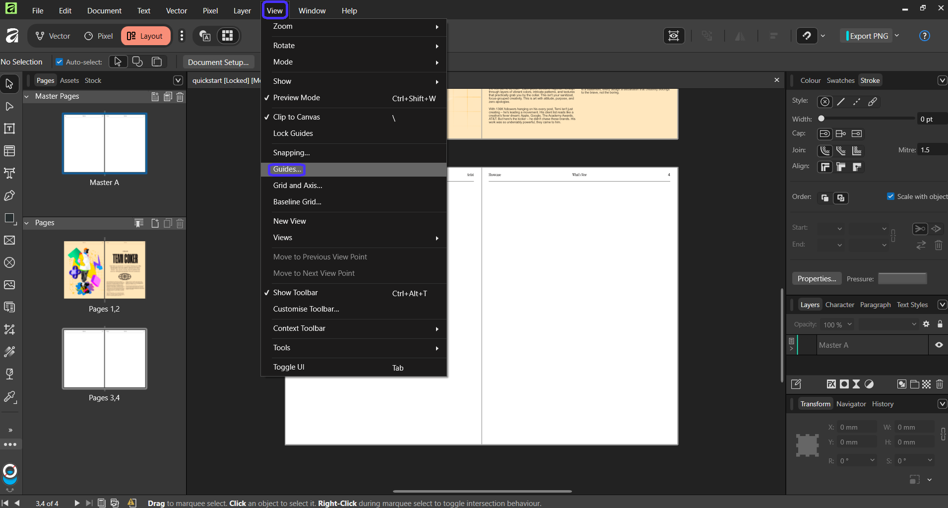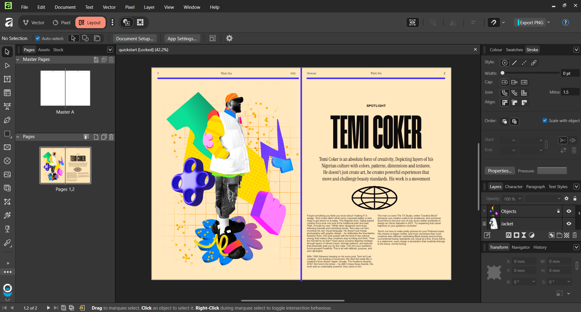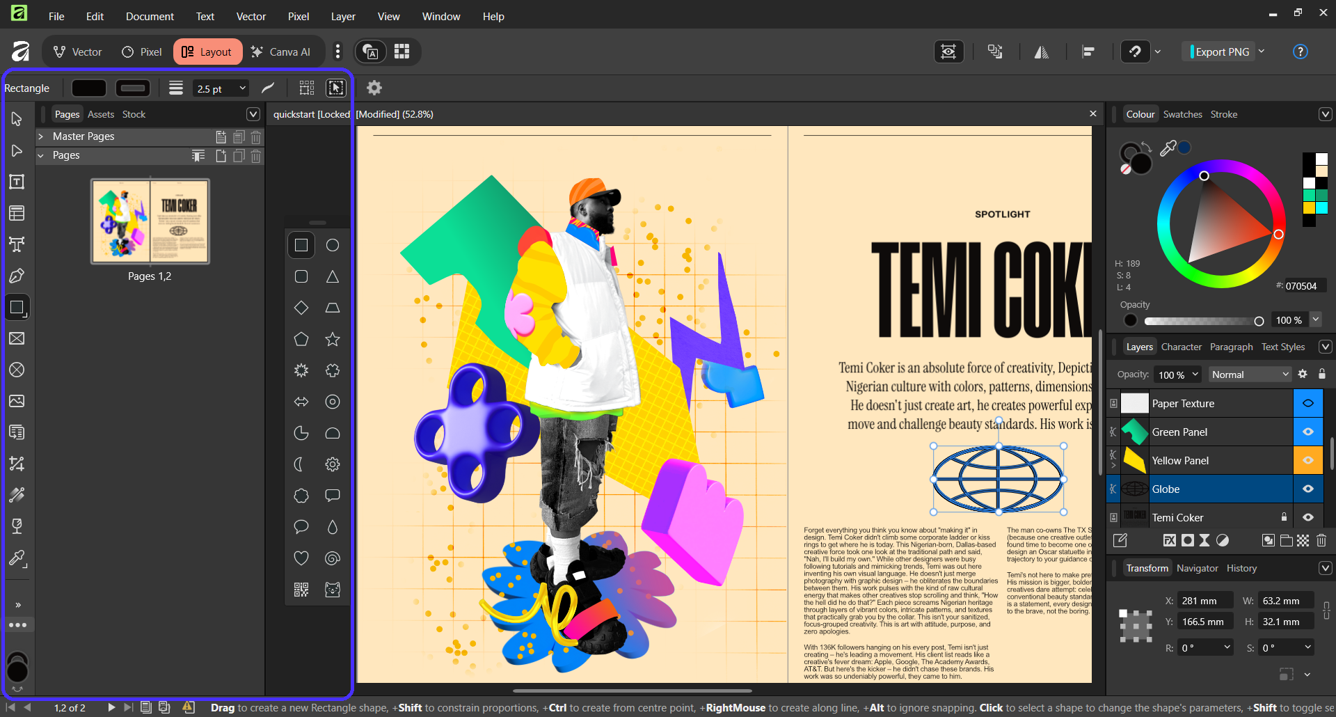 Affinity includes various publishing tools to set up and manage multi-page layouts like digital brochures and reports.