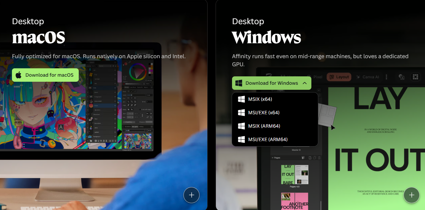 First, head over to the Affinity website and install the app onto your operating system—be it Windows or Mac. Keep in mind that you need a Canva account to access the Affinity platform.