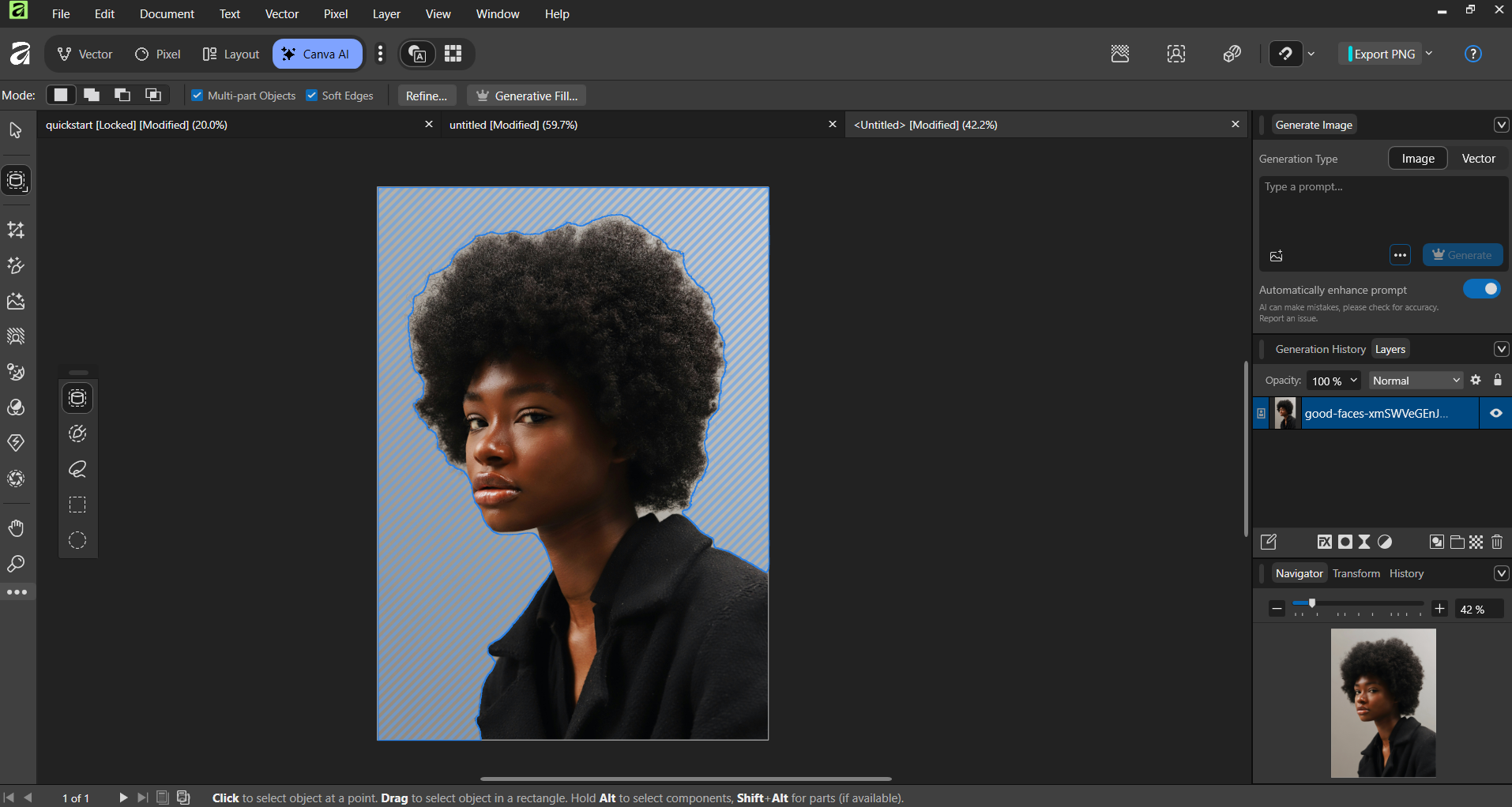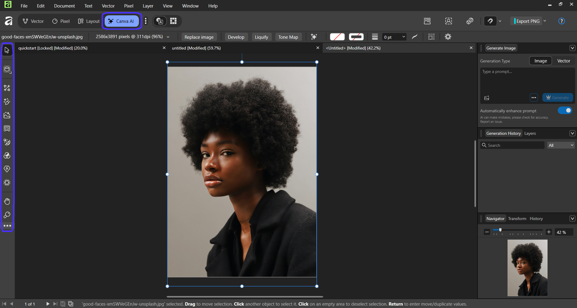 Lastly, Affinity includes Canva's AI tools under the Canva AI Studio.