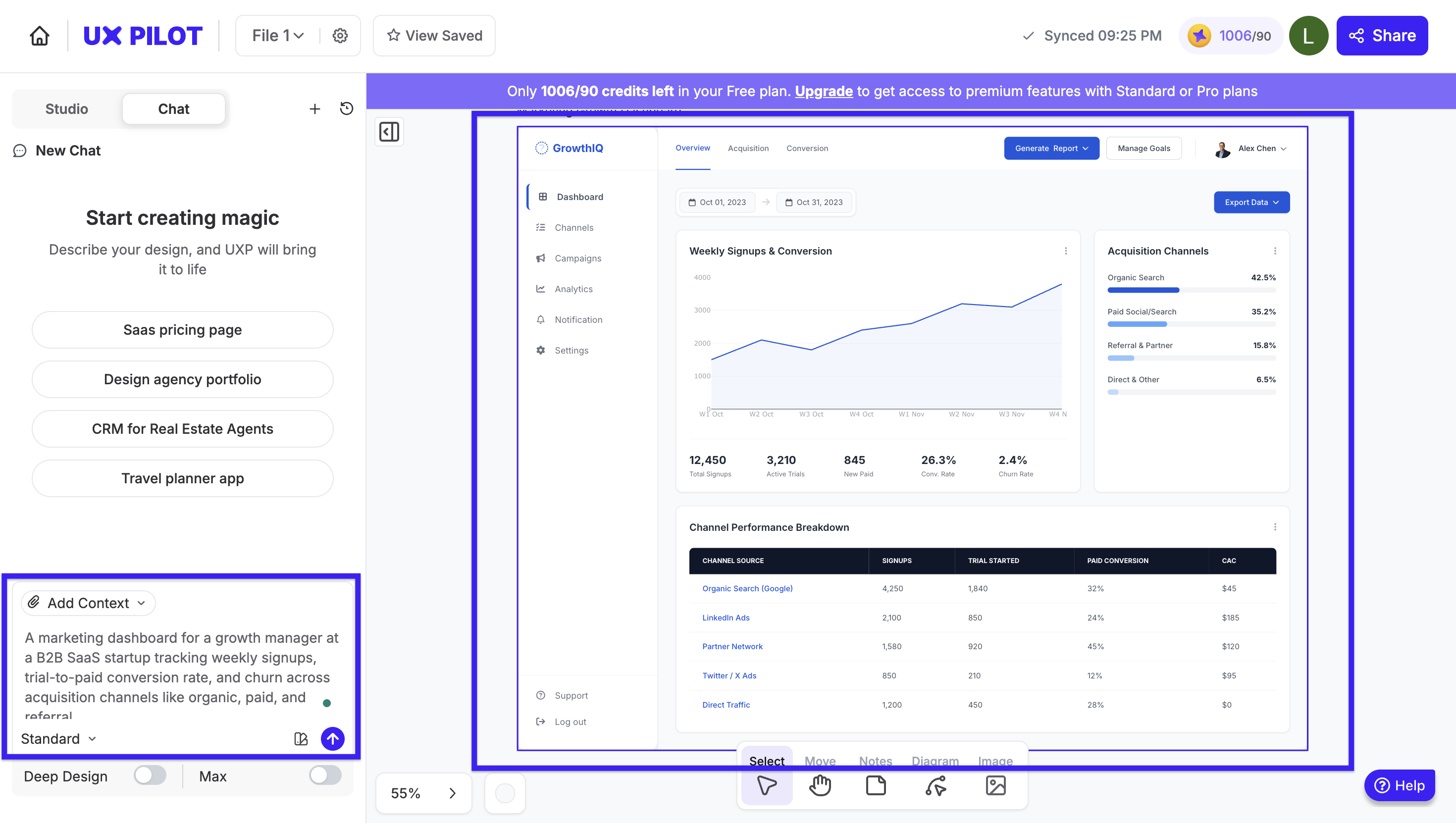 If you'd rather not work through all of this from scratch, UX Pilot's AI dashboard generator handles the pattern and layout logic automatically.