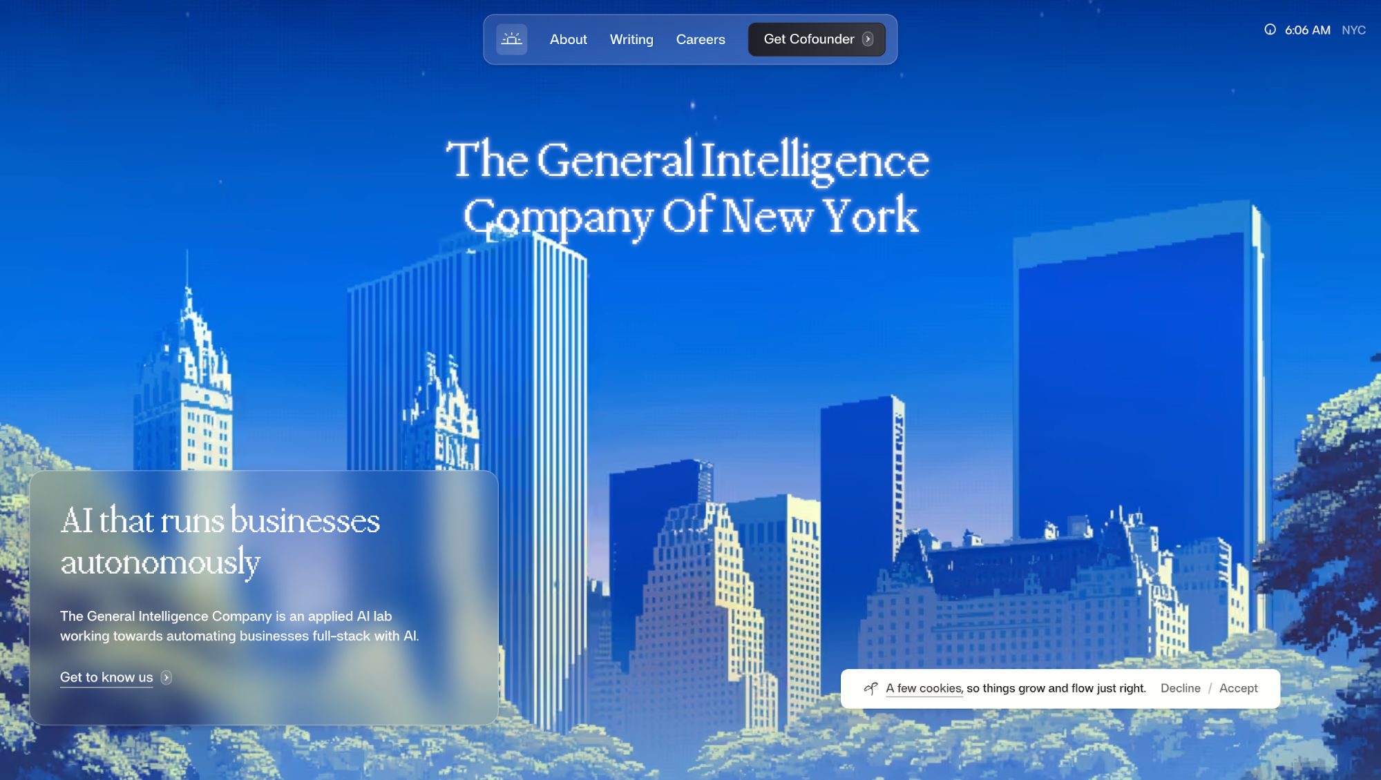 The General Intelligence Company uses glassmorphism against a highly stylized backdrop