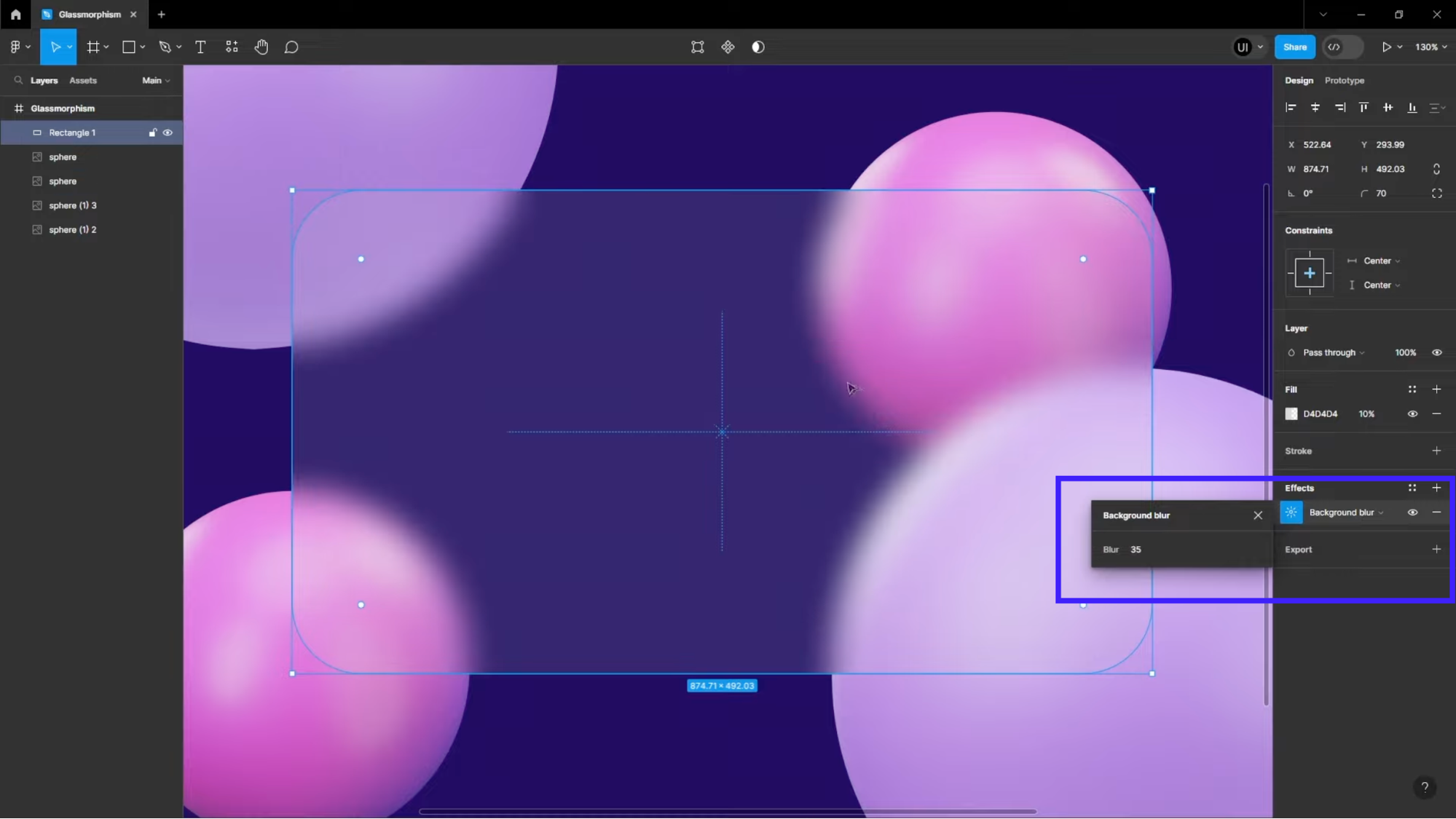 The foundation of glassmorphism is transparency combined with background blur. This combo creates that semi-opaque glass layer effect.