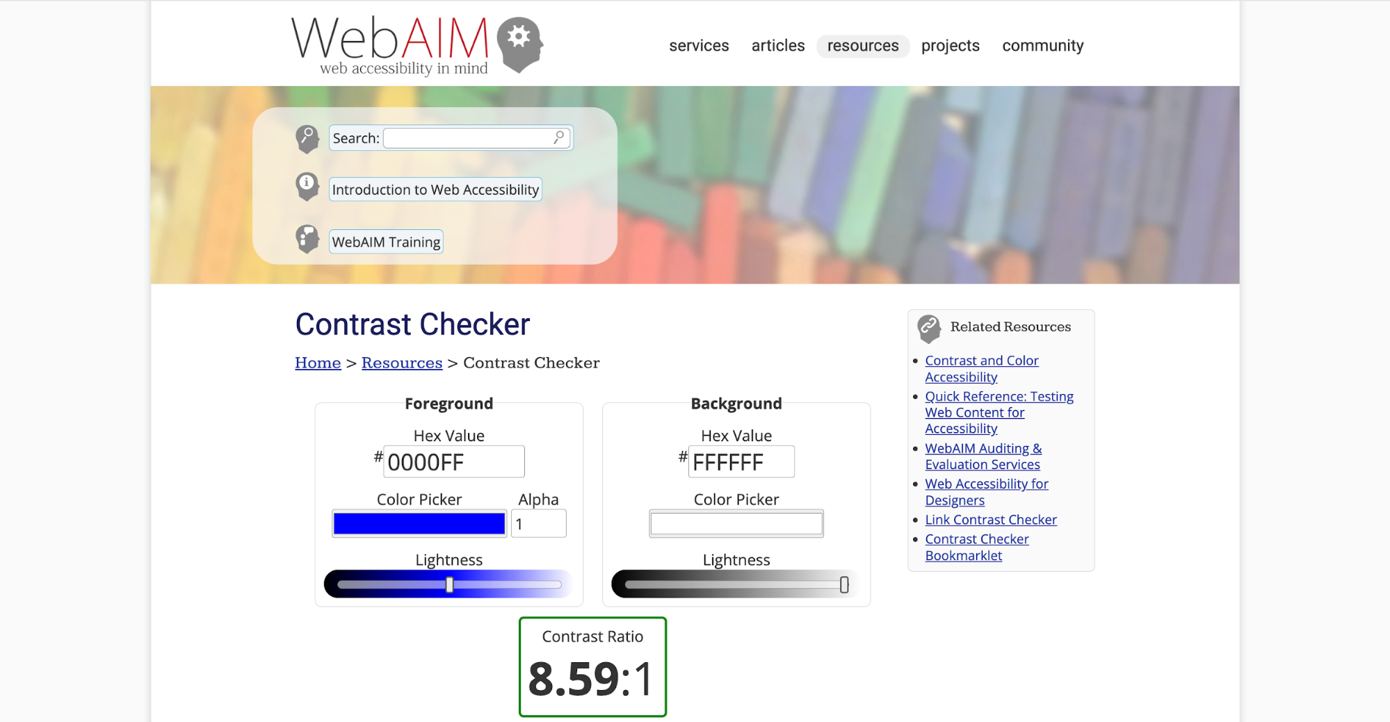 According to the WCAG (Web Content Accessibility Guidelines), normal-sized text should maintain at least a 4.5:1 contrast ratio, while large text (18 pt/14 pt bold or higher) should meet a 3:1 ratio. You can quickly check your design against these standards using WebAIM’s contrast checker.