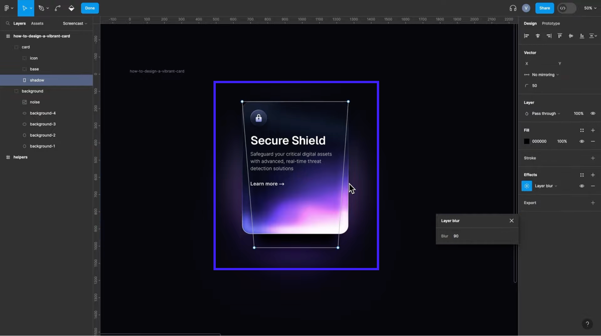 You can see hints of shape and color bleeding through the blur. This creates the illusion that the card exists between layers, not just on top of a flat canvas.