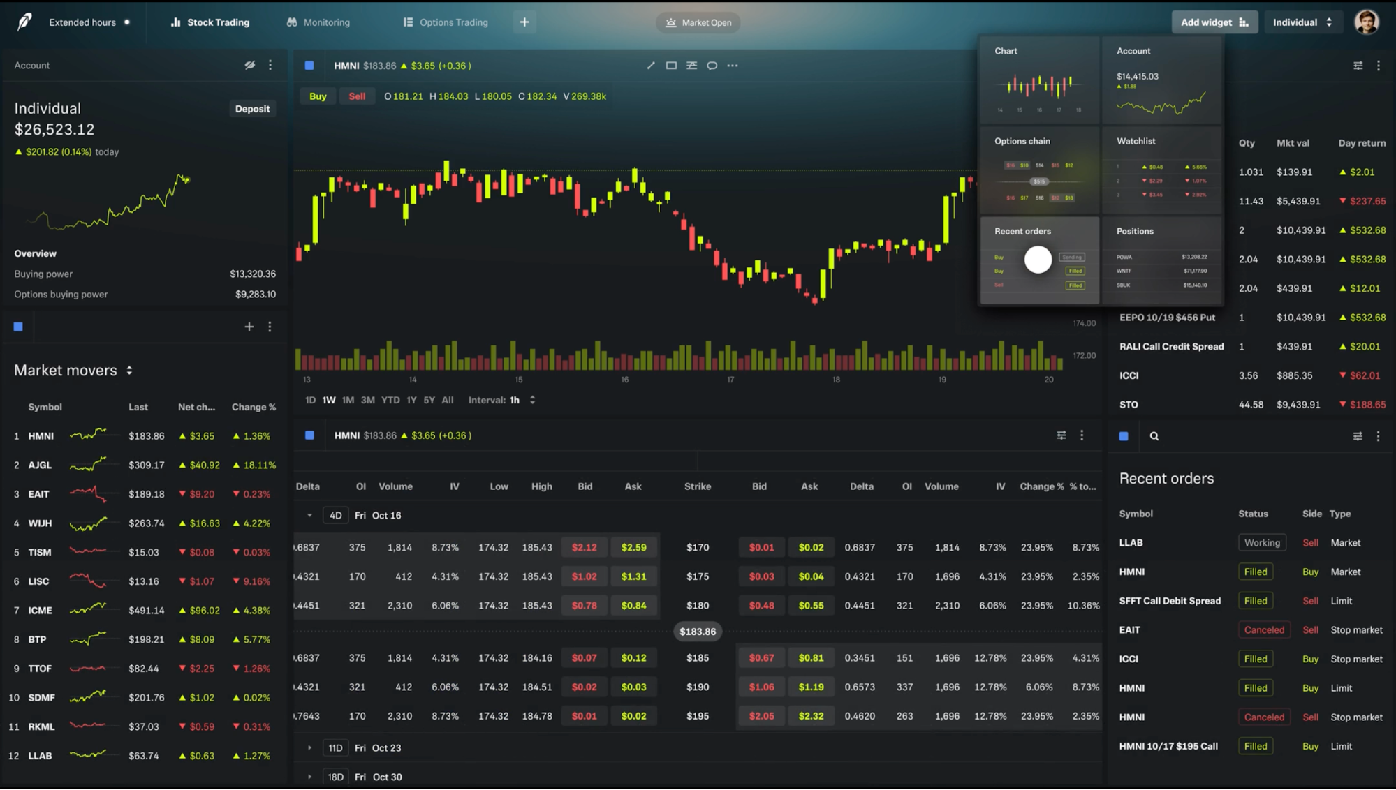 Robinhood's crypto trading platform shows how to balance this well. Upon clicking, their translucent widgets overlay market data and charts with enough blur to create that premium glass look.