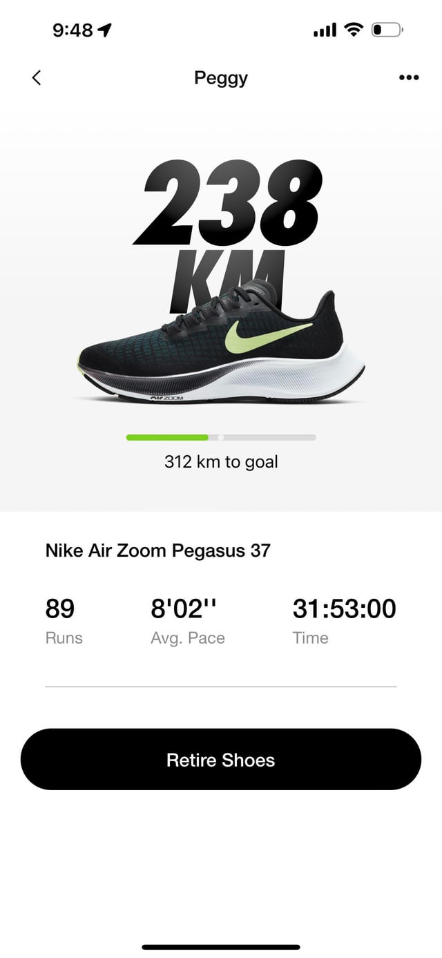 You can view all your shoes, assign mileage targets (with a default of around 500 km), edit details, and even retire pairs once they’ve hit their limit. That data then follows you across runs.