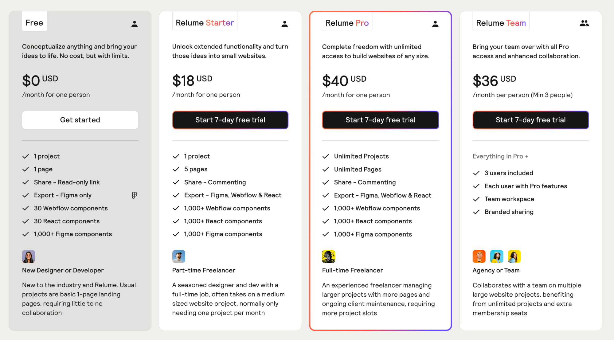It’s a good starting point for designers who want to explore how the platform works before committing to a paid plan.