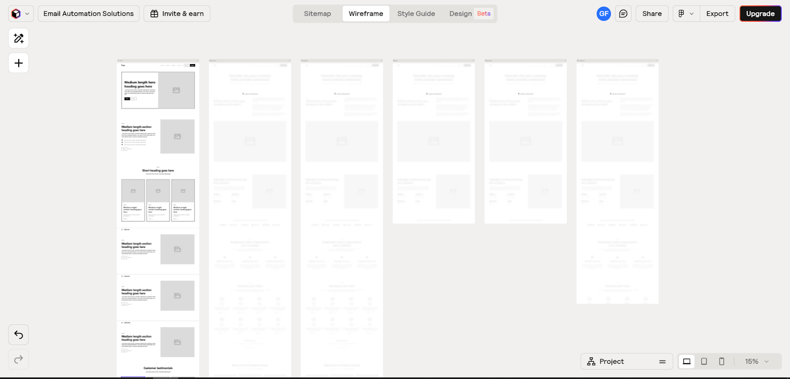 If you’re using the free version, only the homepage wireframe will be visible. To unlock all generated pages, you’ll need to upgrade to a paid plan.