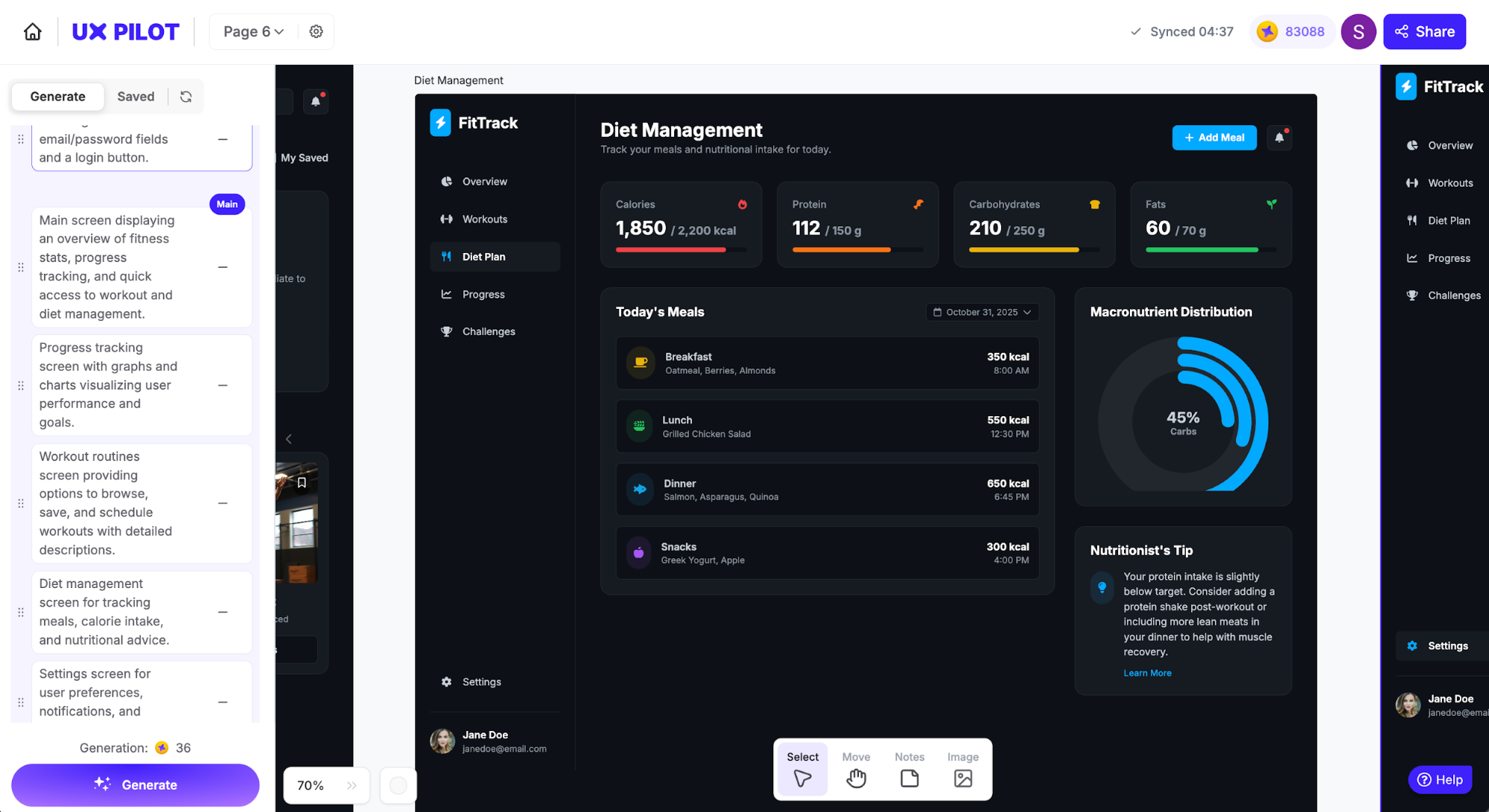 If your goal is to build complete, brand-consistent design interfaces, UX Pilot may be the better choice. It goes beyond structure, helping you create accessible color palettes, balanced typography, and cohesive visual styles.