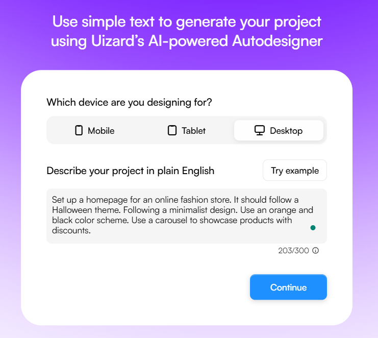 UIzard's Autodesigner is the platform's hallmark feature. It uses artificial intelligence to generate complete user flows with mockups and wireframes based on a few prompts describing your projects.