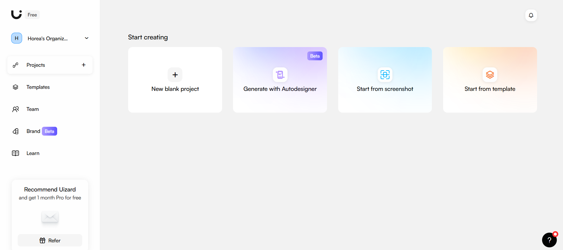 - Ease of use: UIzard has a minimal learning curve. The platform feels very easy to use, and I got to generate my first UI designs shortly after setting up my account.