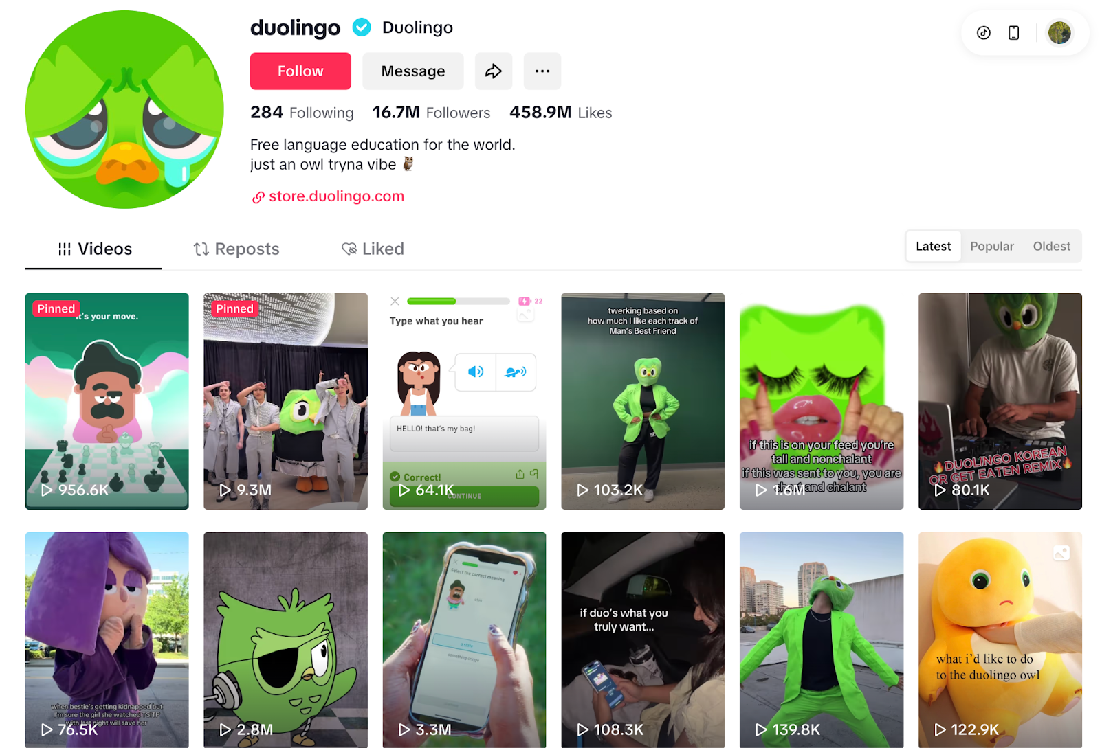 On the other hand, playful brands go in the opposite direction. Duolingo is a perfect example. Their use of bright neon green, bold typefaces, and a quirky mascot creates a fun and approachable feel.