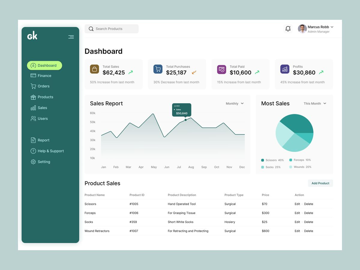 For example, a dashboard like the one below shows sales performance, user engagement, and product popularity at a glance.