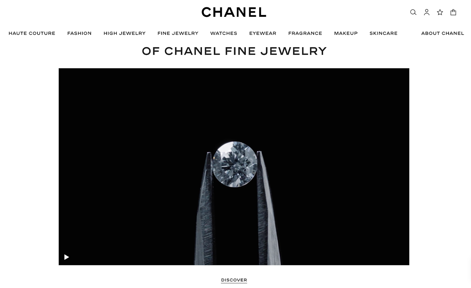 On Chanel’s website, the clean black-and-white design and elegant visuals highlight exclusivity and timelessness.