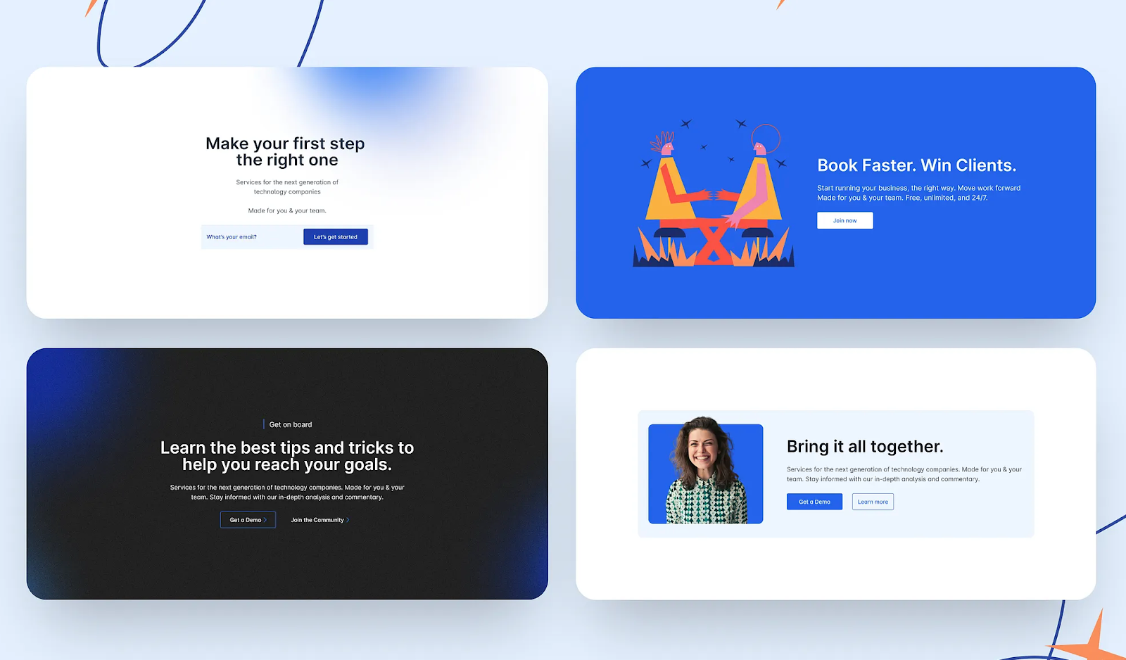 Placing call-to-action (CTA) buttons in visible, consistent spots: Users shouldn’t have to hunt for the next step. Placing CTAs above the fold and repeating them across the page makes it easier to act right away. Here are four examples where CTAs are placed: