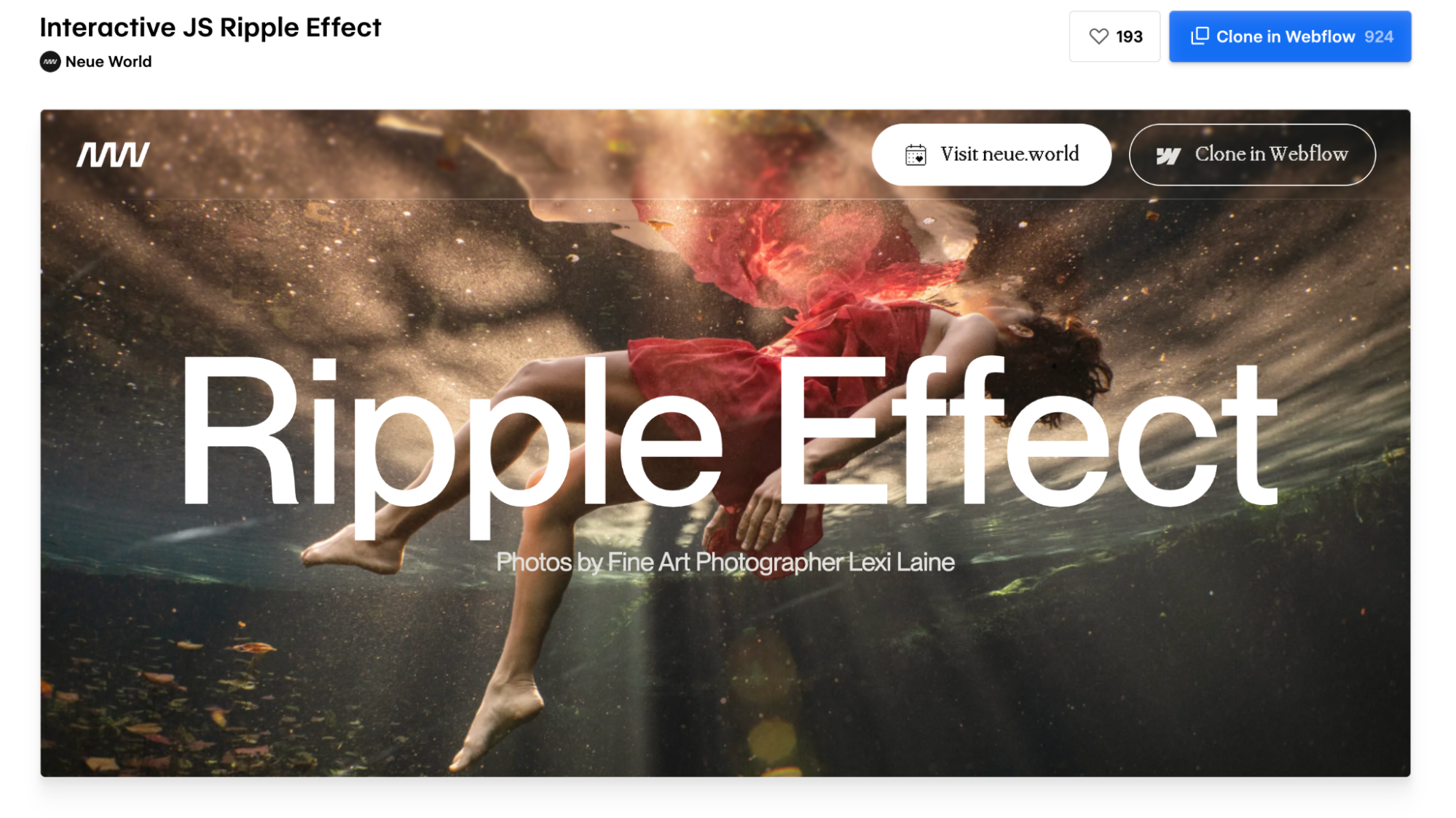 Designers are also pushing creativity with effects like the ripple animation below. In this Webflow demo, every click triggers ripples across the screen, creating depth and movement without sacrificing performance.