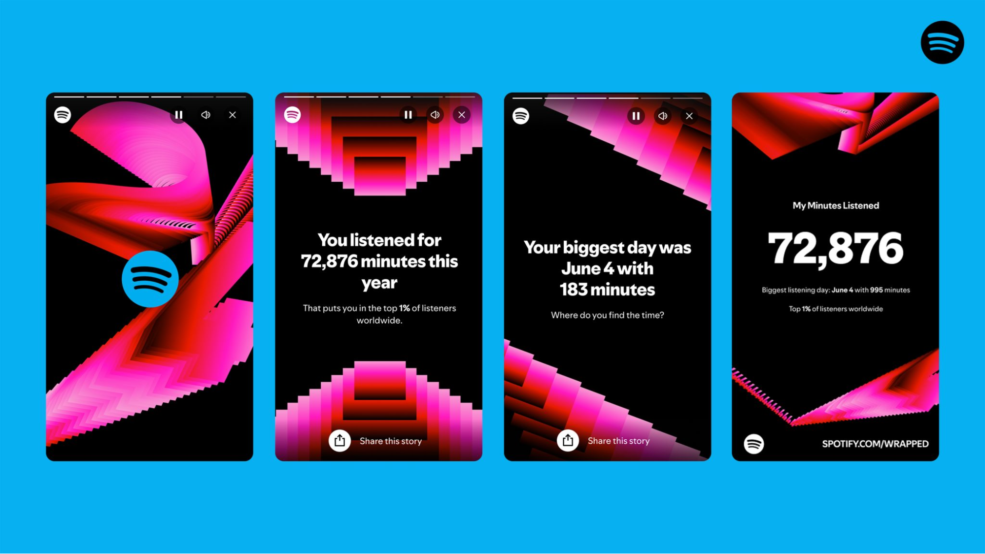 Each scroll reveals new visuals, stats, and animations in sequence, pulling you deeper into the story of your listening habits.