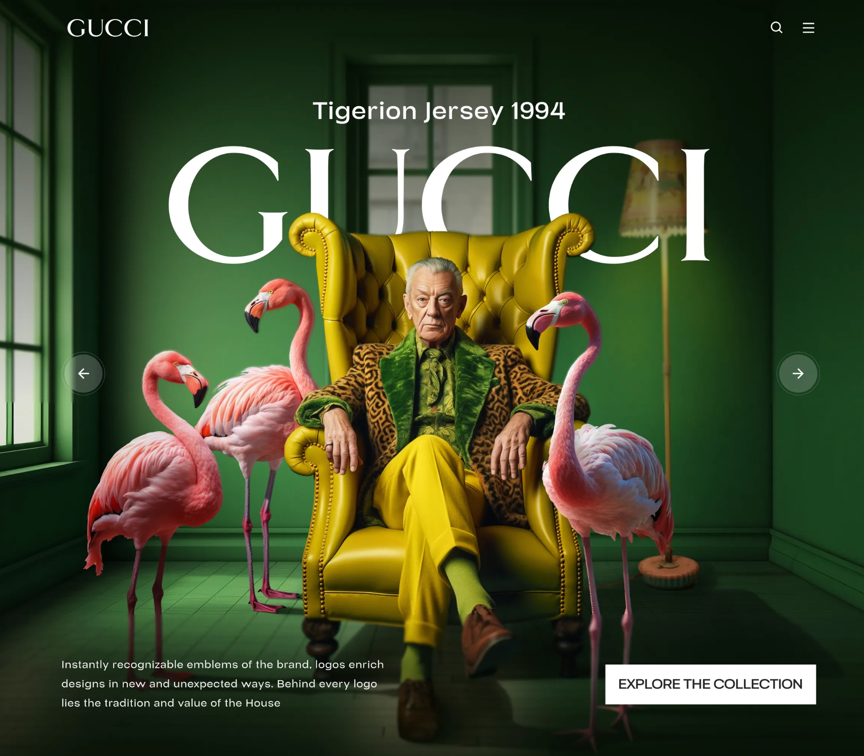 Gucci’s campaign pages show how maximalist design can feel like an experience in itself: playful, dramatic, and full of personality.