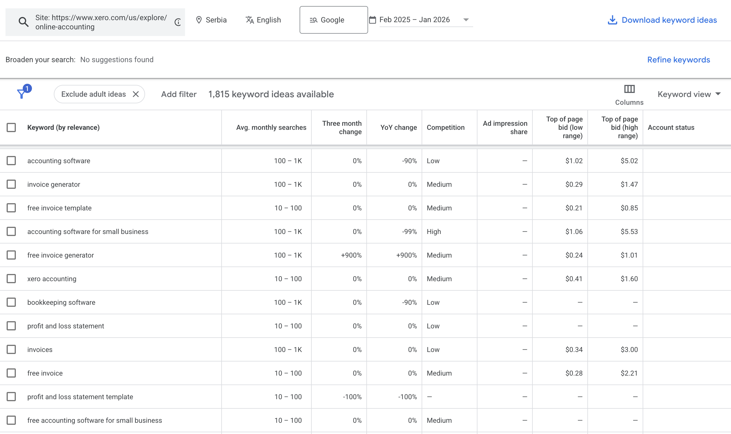 Keyword rankings and traffic sources