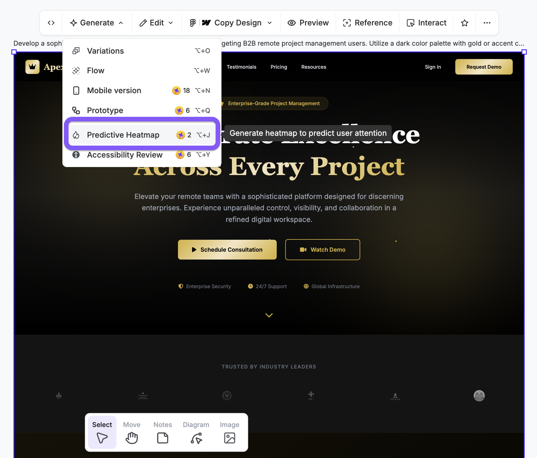 UX Pilot's predictive heatmap feature is handy when you want to review UX gaps that can affect user experience.